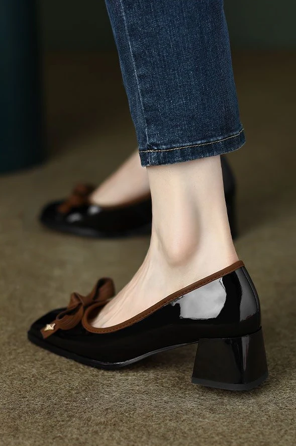 LIZAKOSHT - Shoes for Women Square Heels Ladies Summer Footwear Japanese Style Lolita with Medium Mary Jane Normal Leather Casual Toe A
