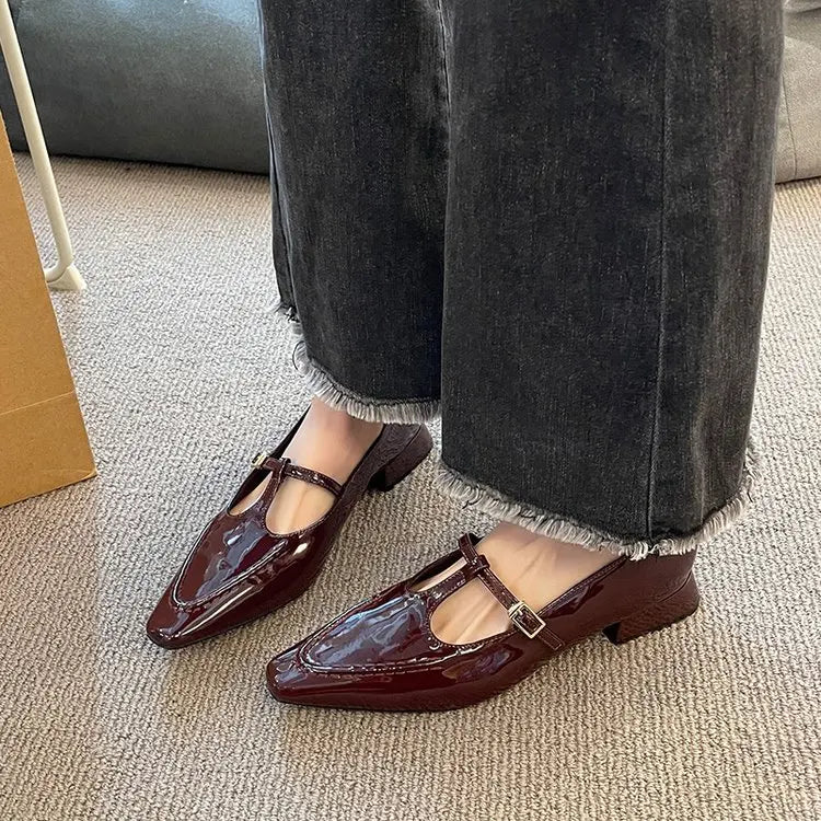 LIZAKOSHT - Shoes On Heels Oxfords Women's Female Footwear Pointed Toe Leather Retro New Dress Summer Mary Janes Spring Womens Derby Shoes F