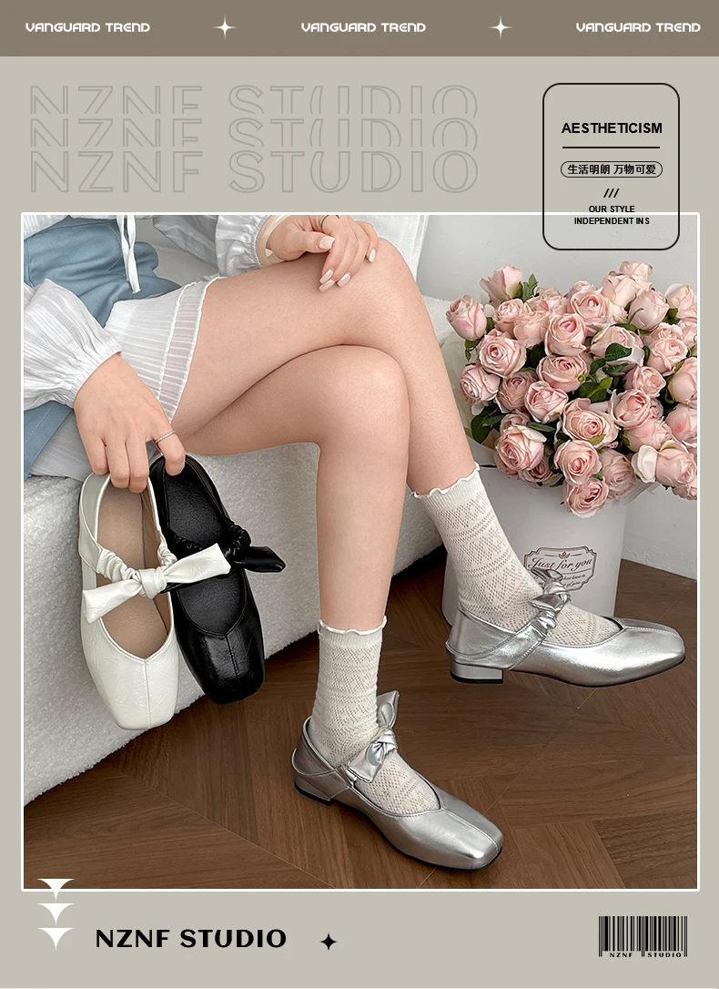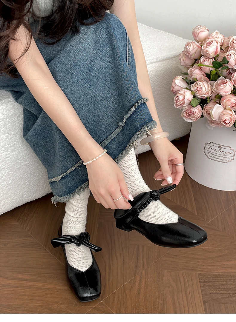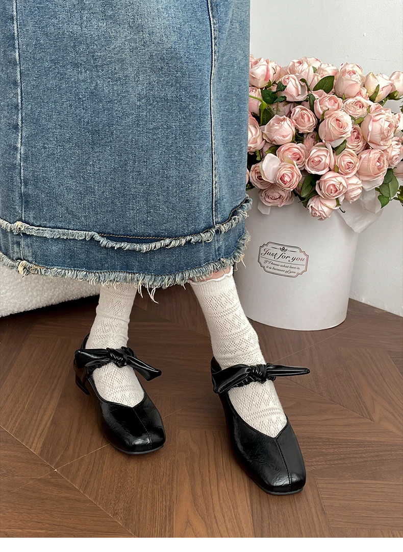 LIZAKOSHT - Shoes Woman Bow-Knot Shallow Mouth Elegant Low Heels Female Footwear New Butterfly Summer Dress Mary Janes Butterfly-knot