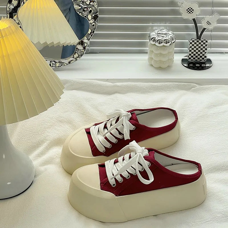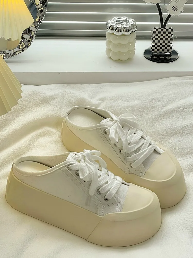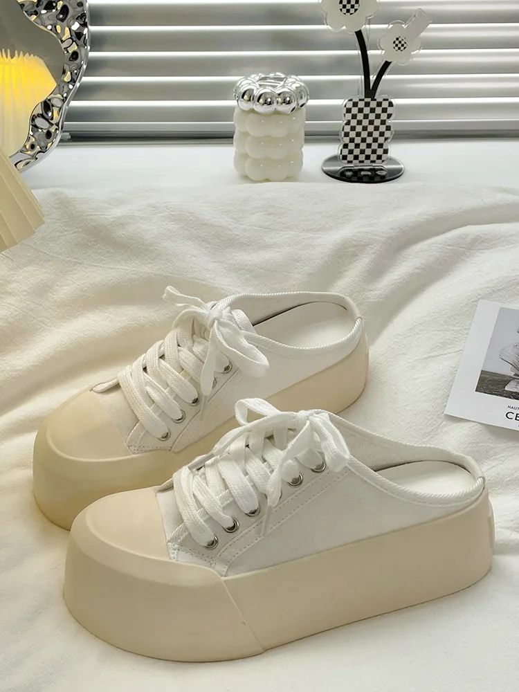 LIZAKOSHT - Shoes Women Female Slippers Cover Toe Platform Slides Loafers Soft 2024 Summer Fabric Canvas House Slippers Platform Shoes Woman