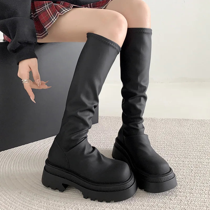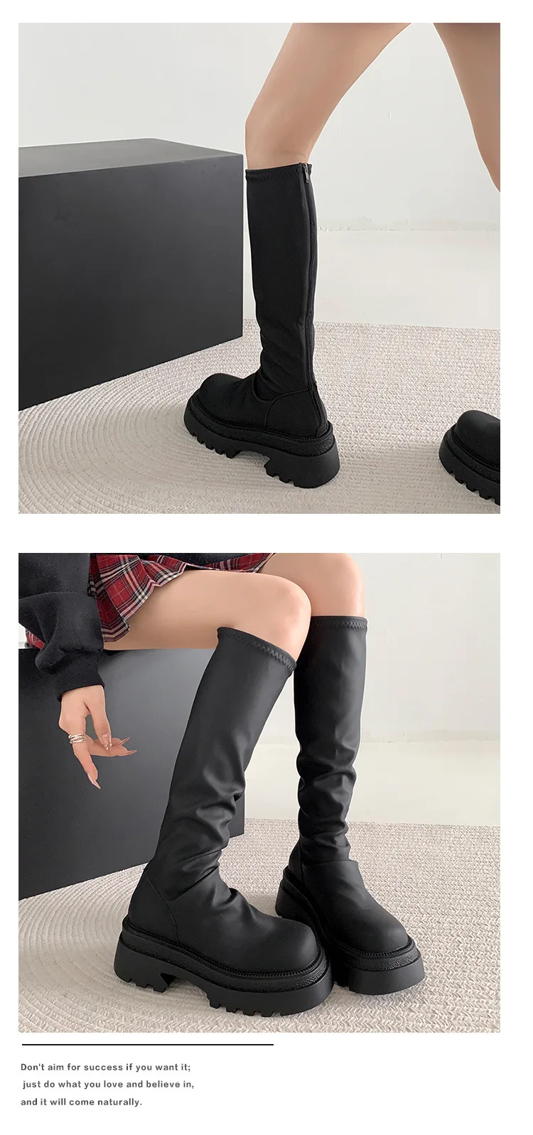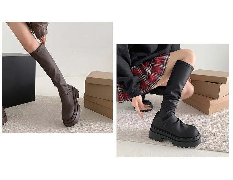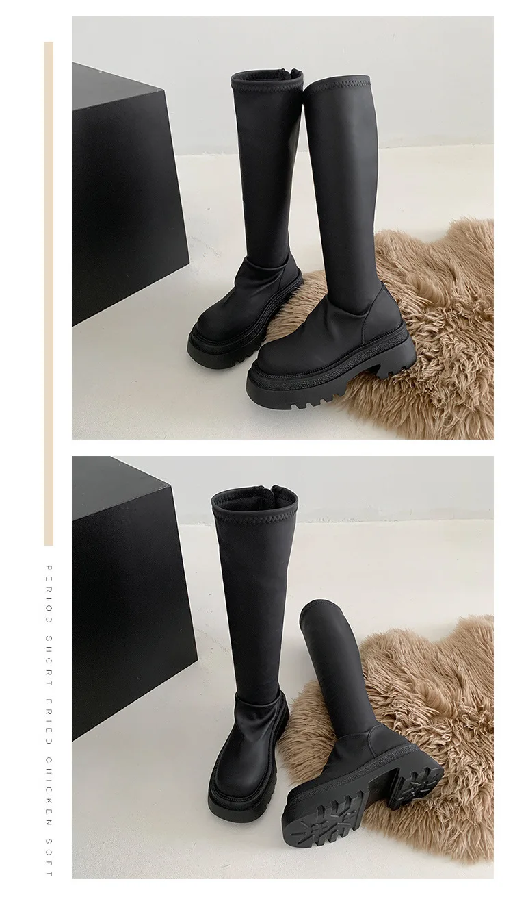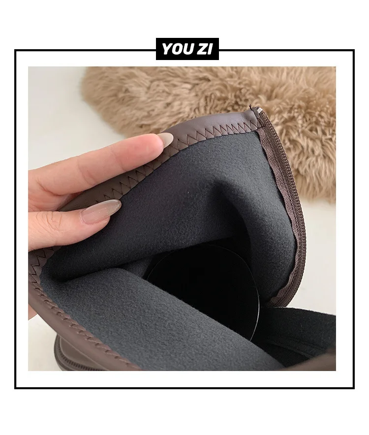 LIZAKOSHT - Shoes Women's Rubber Boots Rain Med Rome Hoof Heels Fabric PU Cotton Shoes Med Heel Boots Rubber Rome Fabric PU Hoof