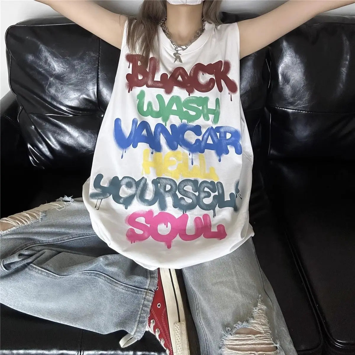 LIZAKOSHT - Short-Sleeved Vest Letter Printing Heavy Cotton Summer American Loose Trendy Brand Sleeveless Sports Men And Women Large Size