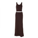 LIZAKOSHT - Simple Sexy Solid Color U Neck Camisole Tank Tops+Tight Ruched Long Half Skirts Women Fashion Street Style Two-piece Outfit