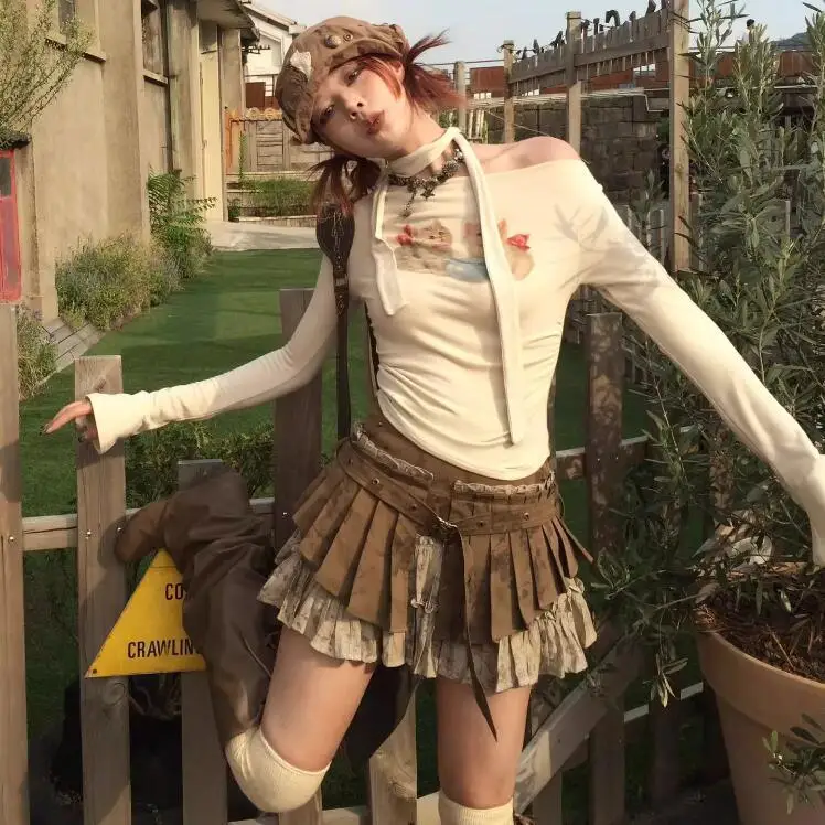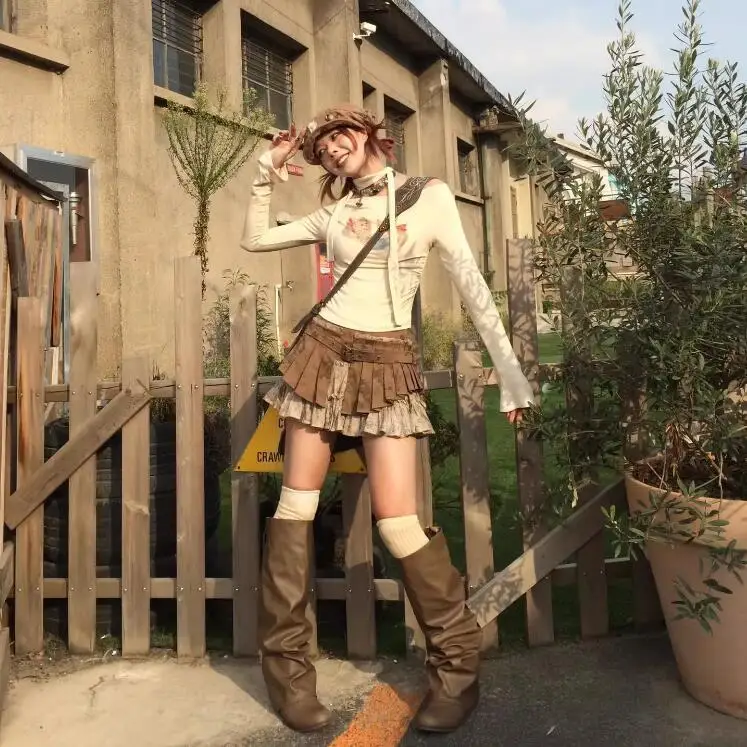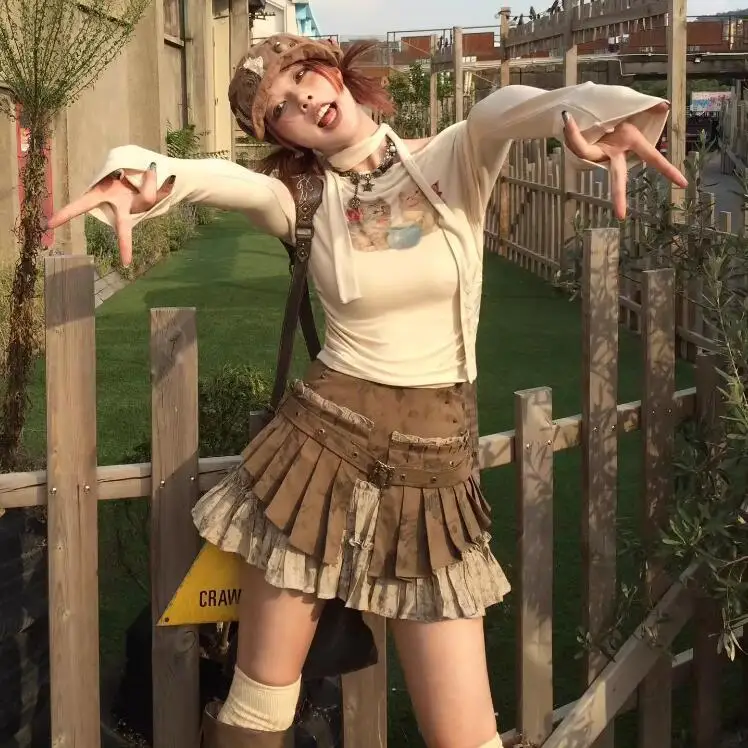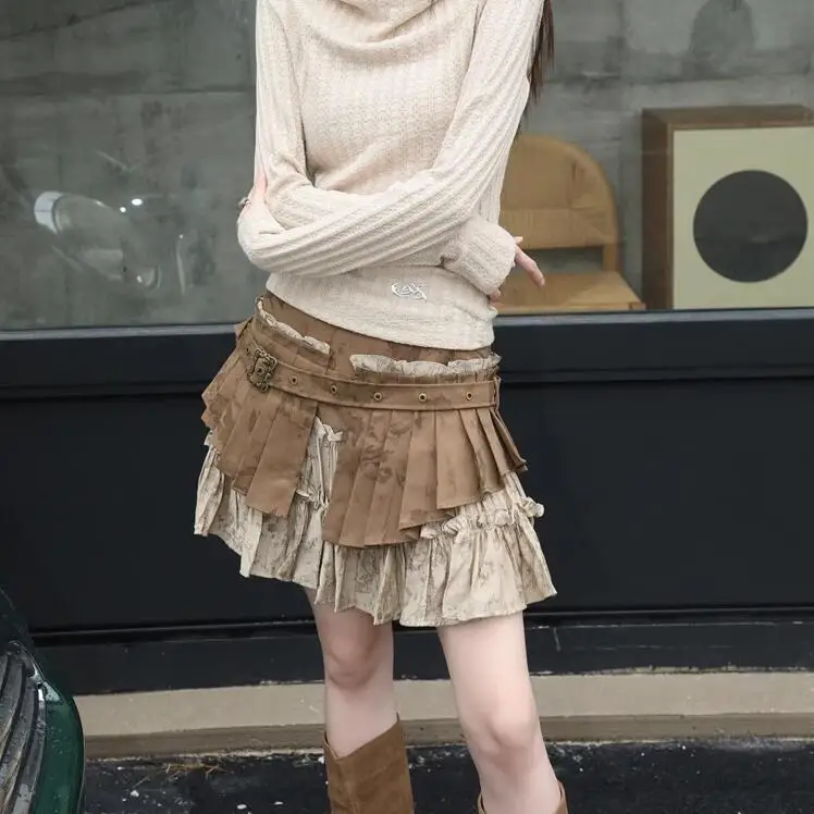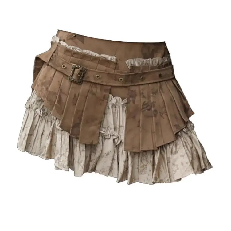 LIZAKOSHT - Skirt Patchwork Summer Women Vintage Dark Academia Design Mini Pleated Skirt Harajuku 2000s Aesthetic Y2k Cyber Wasteland Style