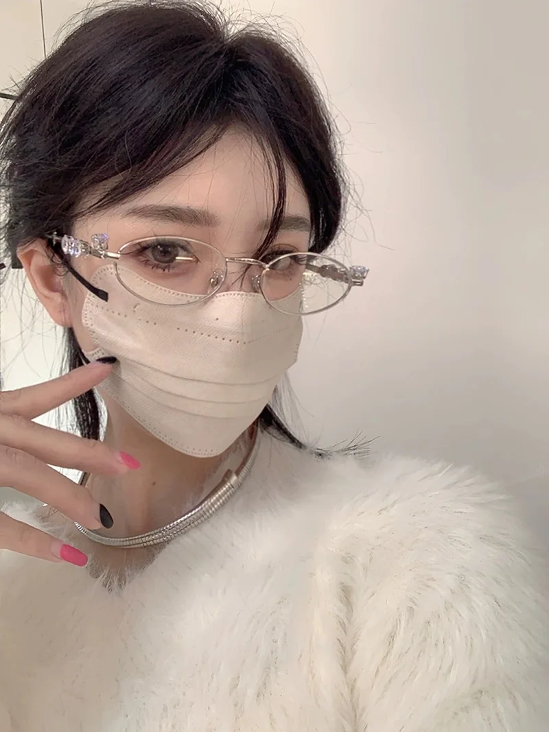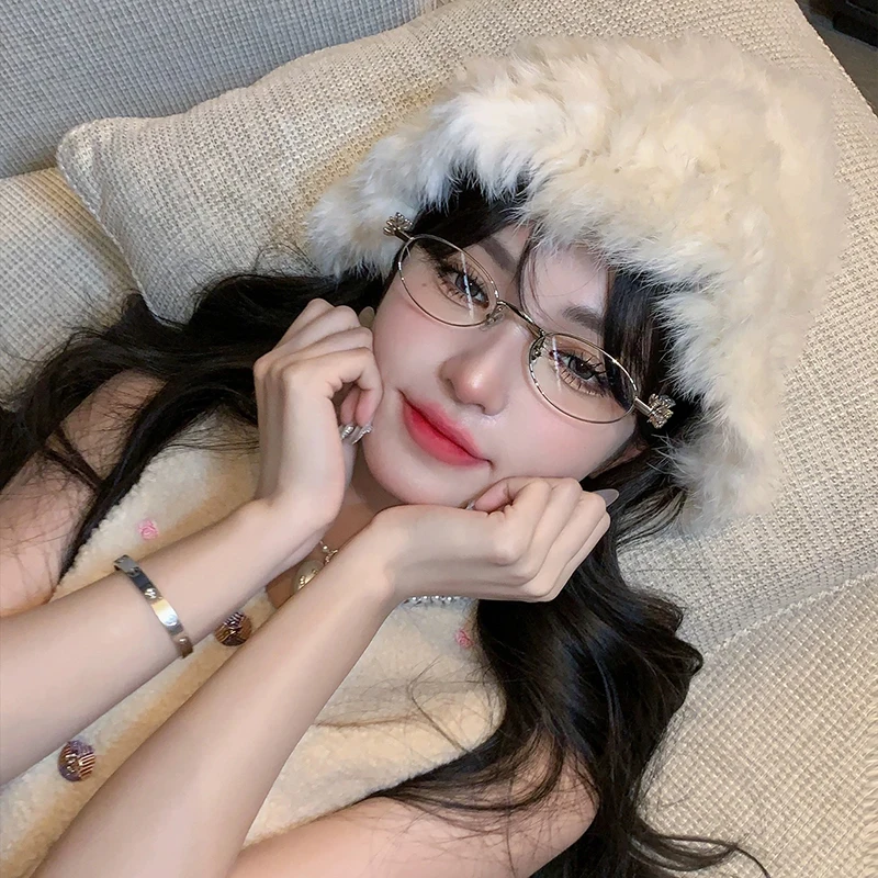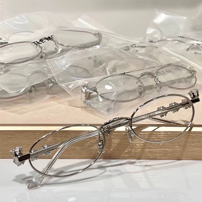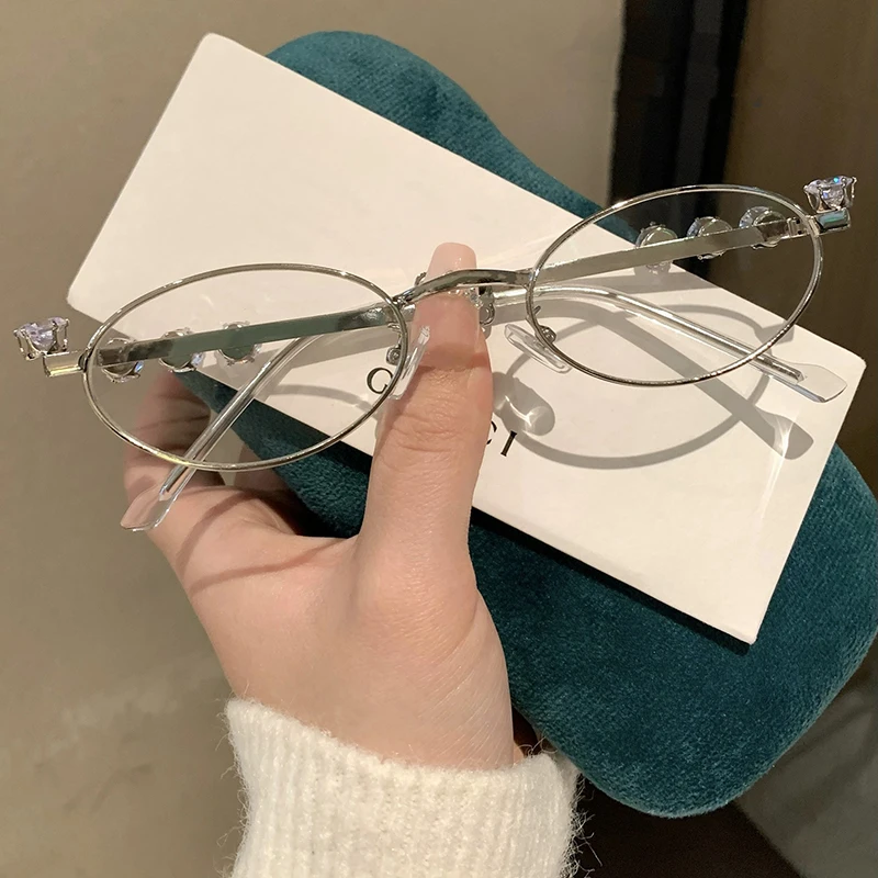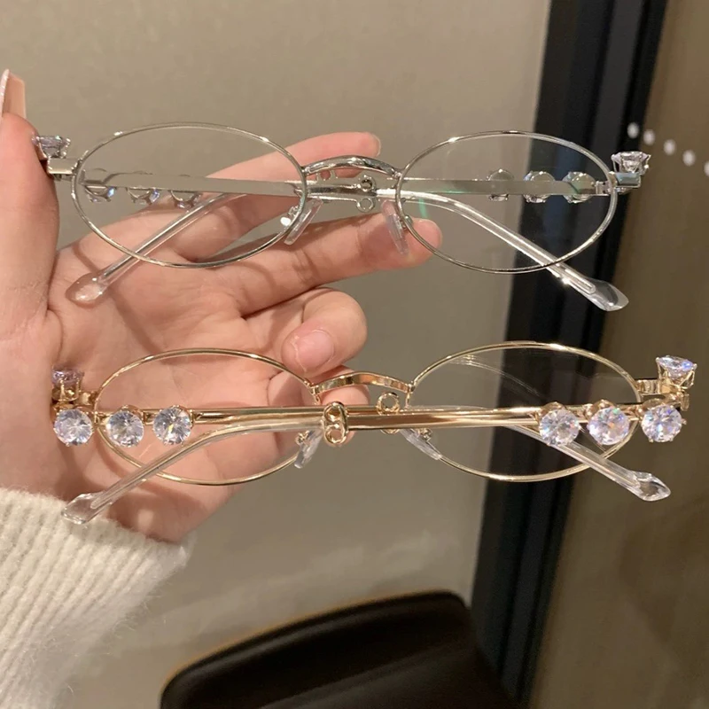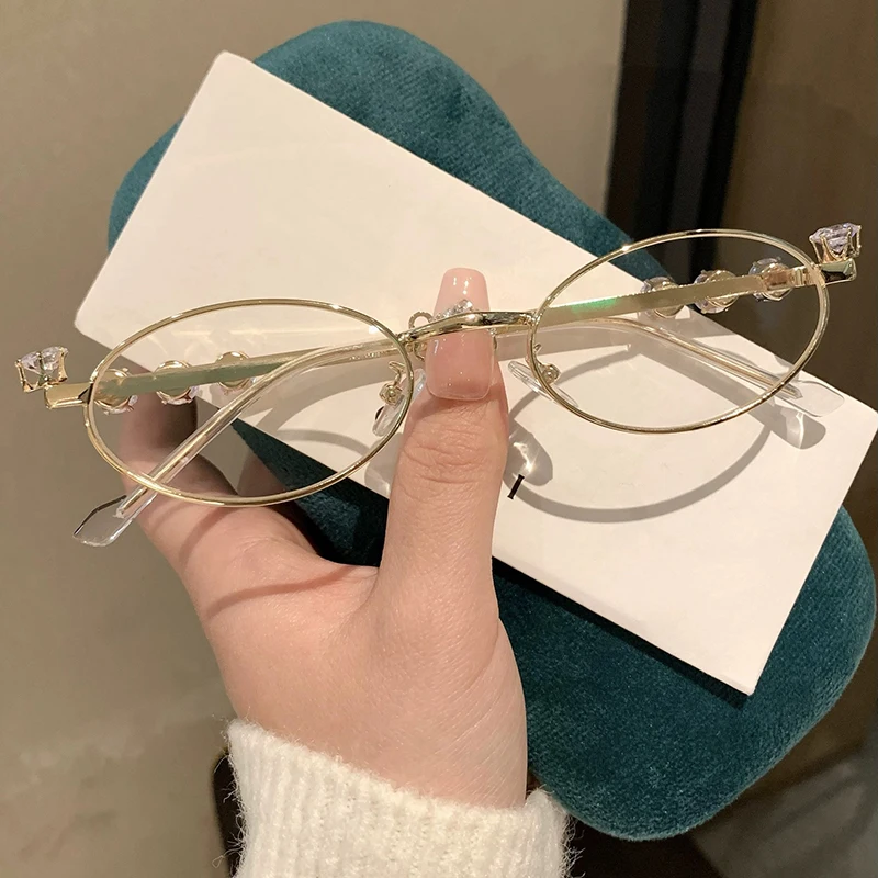 LIZAKOSHT - Small Oval Shades Eyeglasses Women Retro Rhinestone Diamonds Eyewear Metal Frames Anti Blue Light Reading Glasses Accessorties