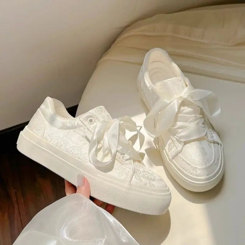 LIZAKOSHT  -  Solid Color Shoes Women Sneakers Minimalist Style Lace Up Breathable Casual Shoes Print Comfortable Shoes Ladies