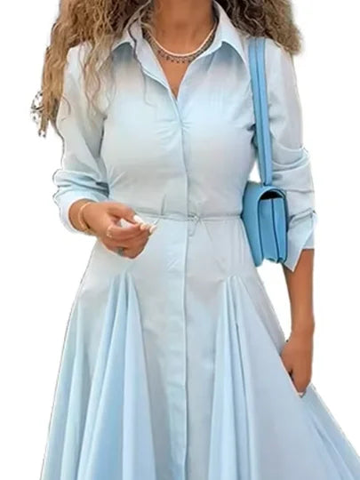 LIZAKOSHT  -  Solid Women's Two Piece Suit Turn-down Collar Full Sleeve Short Top A-line Hip Package Long Skirt 2025 Autumn Lady Causal Outfit