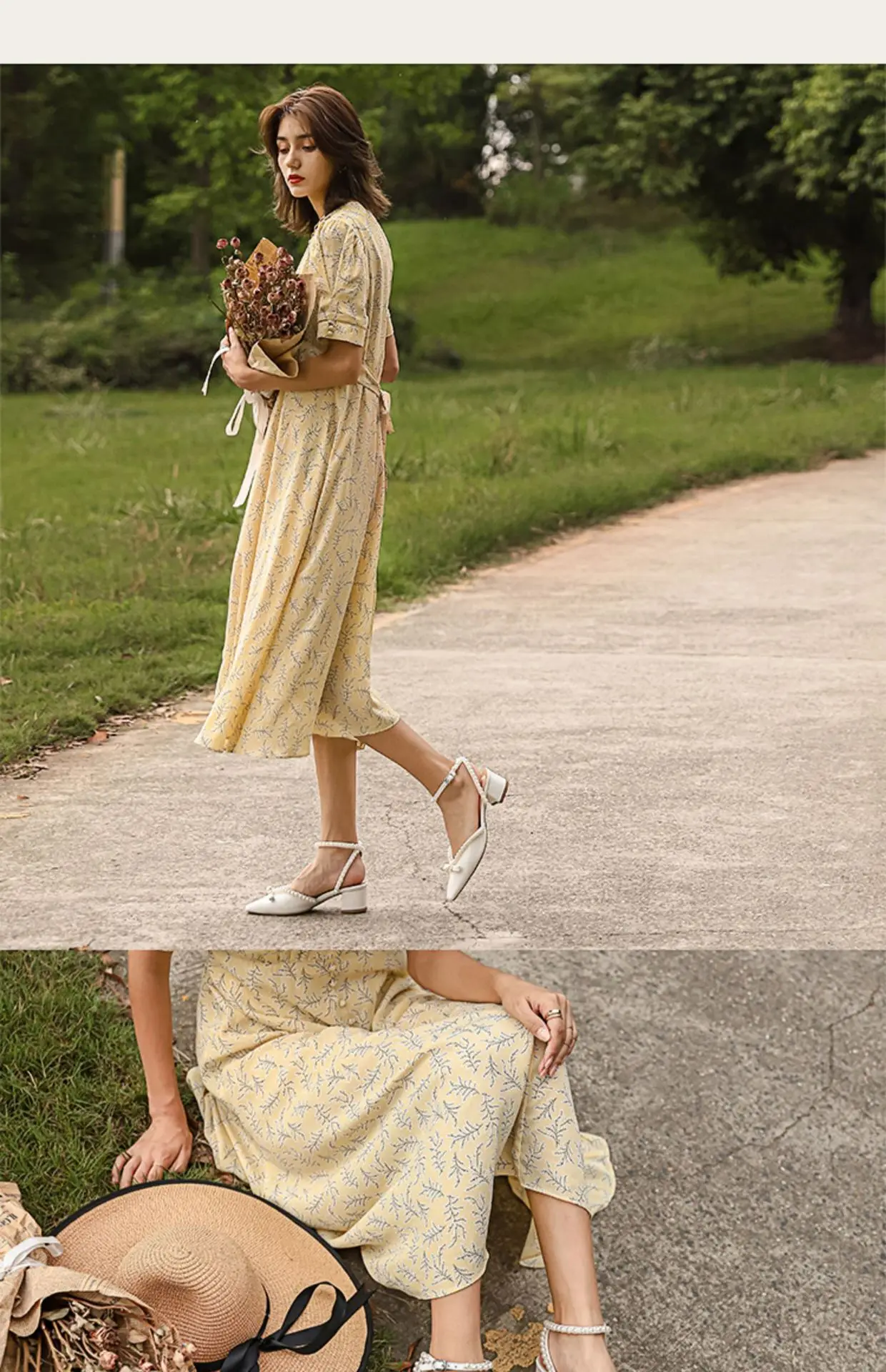 LIZAKOSHT Spring and Summer Mary Jane Single Shoes Pearl Fairy Women's Shoes Wedding Dress Shoes Middle Heel Sweet Baotou Sandals