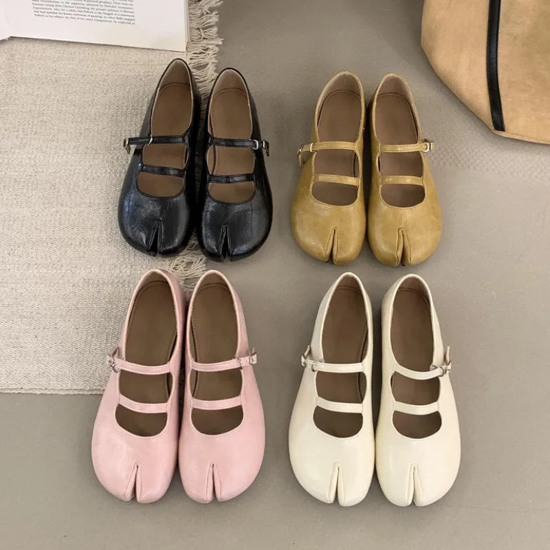 LIZAKOSHT  -  Spring New Tabi Ninja Shoes Women Round Spilt Toe Shallow Buckle Ballet Shoes Fashion Eelgant Low Heels Mary Jane Single Shoes
