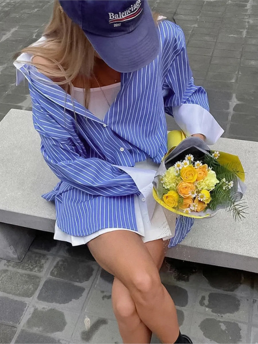 Lizakosht Spring Summer Striped Blouses 2024 New Simple Long Sleeve Lapel Collar Patchwork Blouse Ladies Casual Fashion Shirts For Women