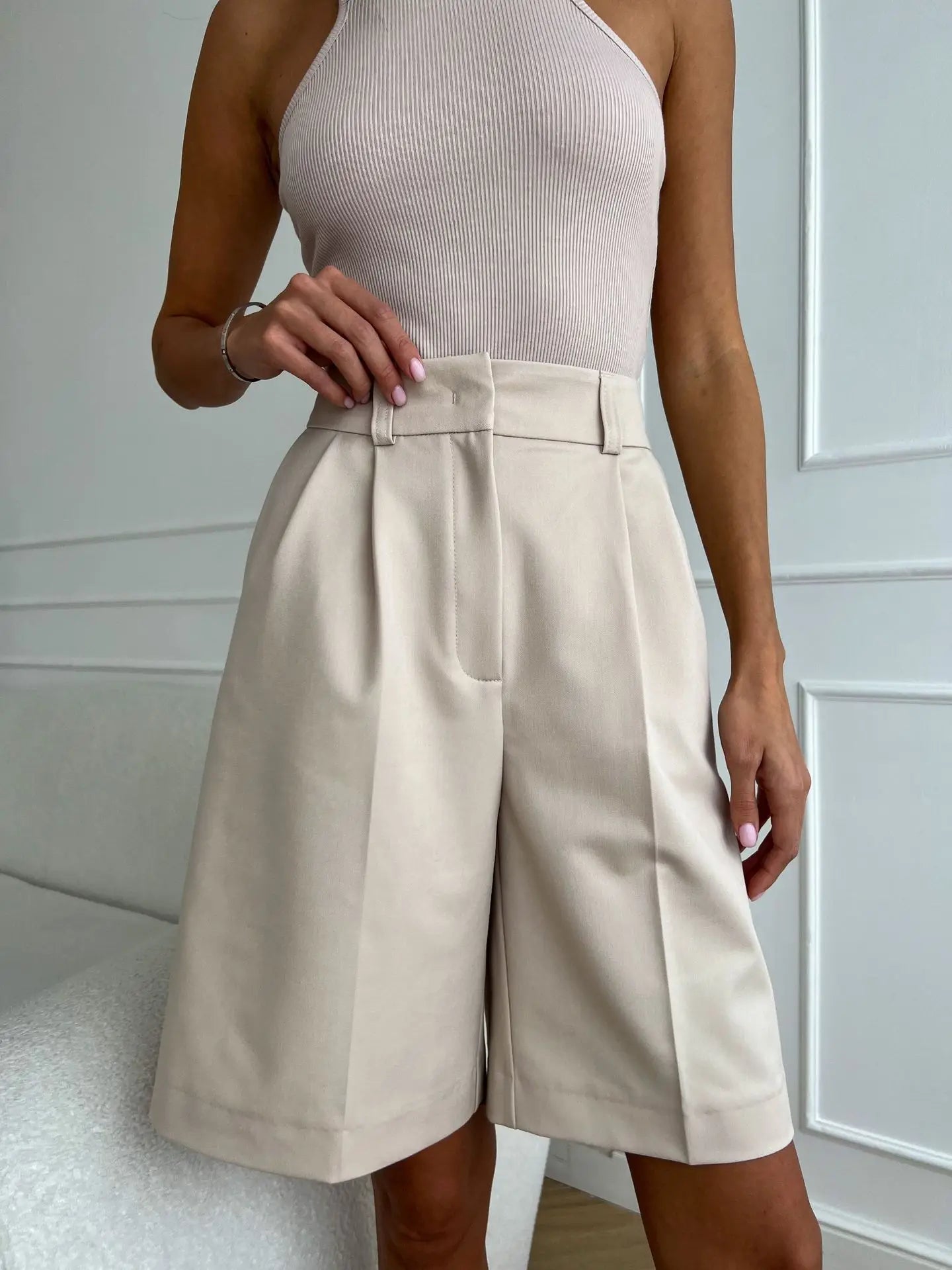 LIZAKOSHT - Straight Leg Pants Office Lady Loose Suit Shorts Pants Solid Versatile Shorts For Women High-waisted A-line Trousers
