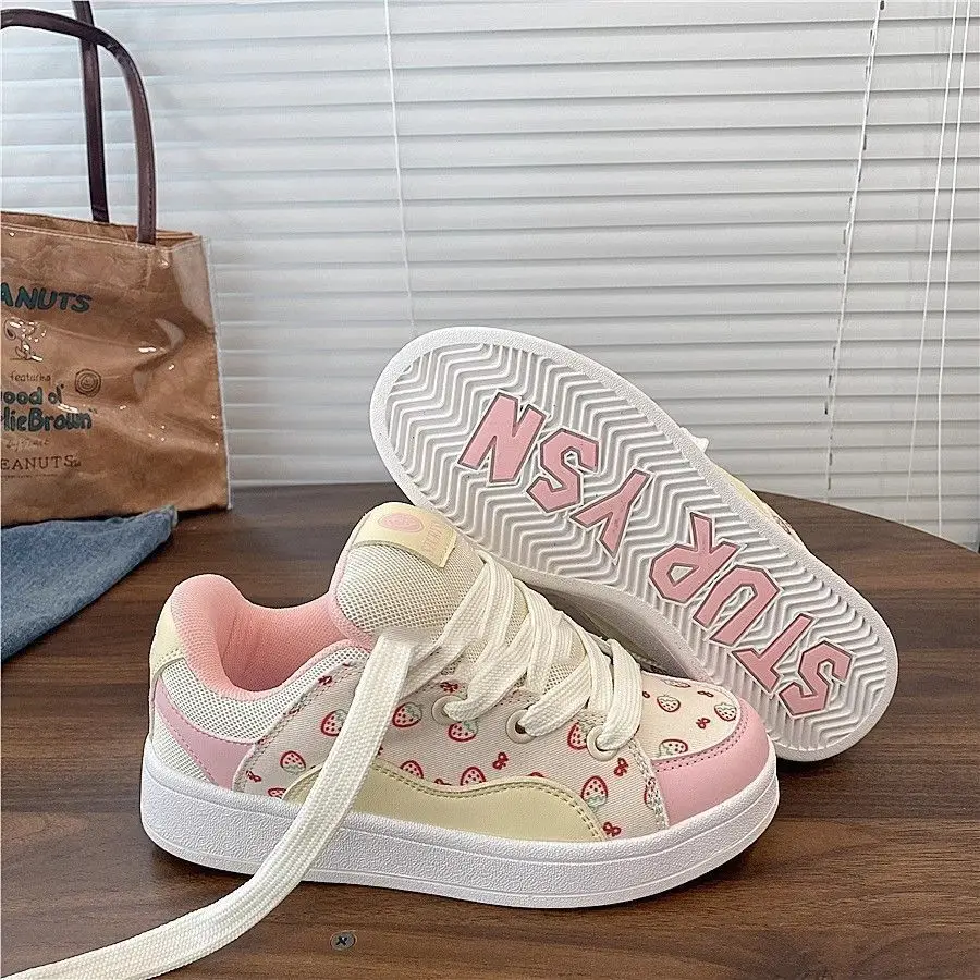 LIZAKOSHT - Strawberry Print Women Sneakers Niche Low-top Korean Style Pink Sweet Womens Sports Shoes Versatile Casual Female Shoes