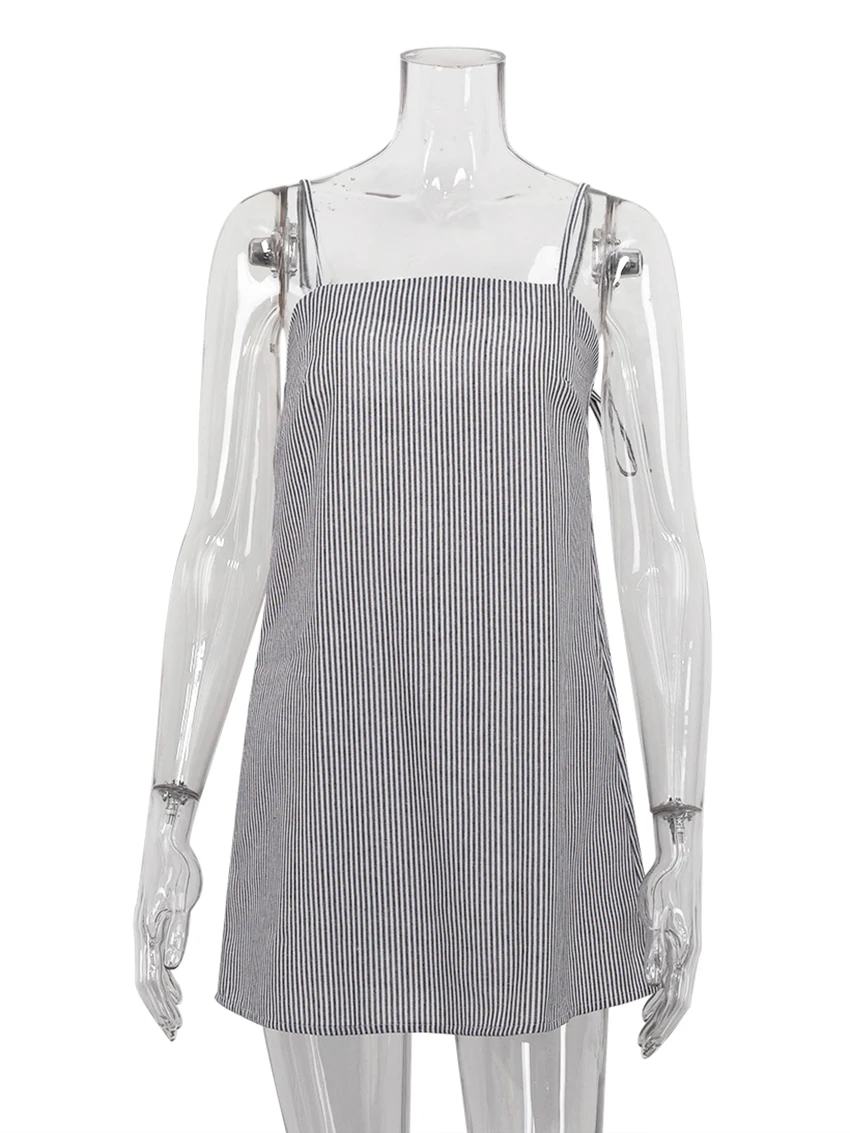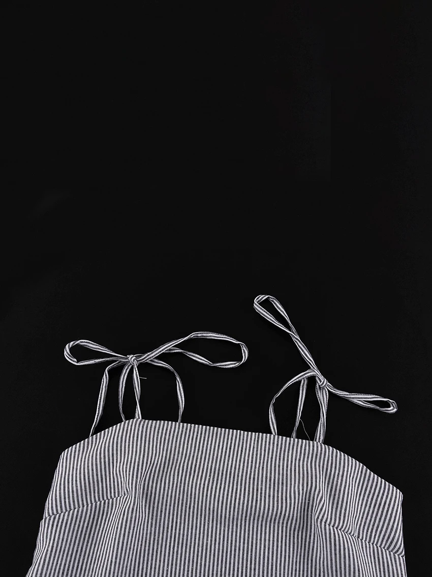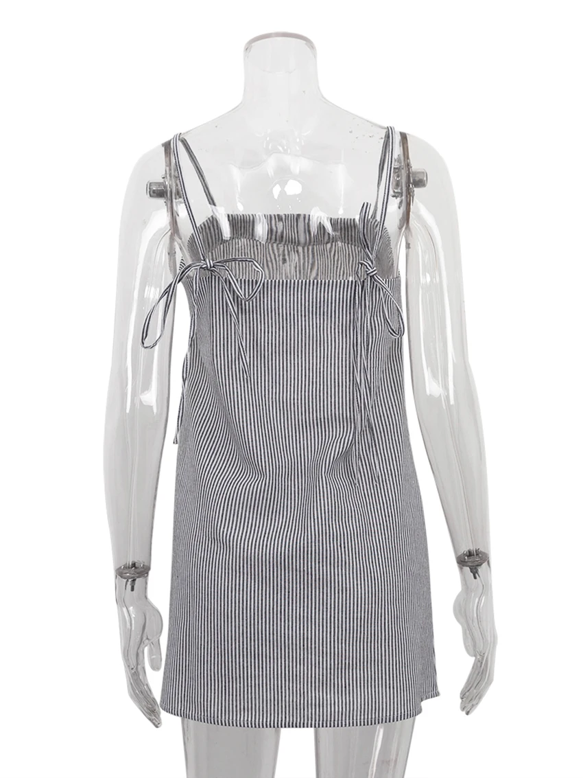 LIZAKOSHT  -  Striped Ladies Pajamas Backless Sleepwear Sexy Lace Up Spaghetti Strap Nightgowns Fashion Mini Dress Female Pyjamas