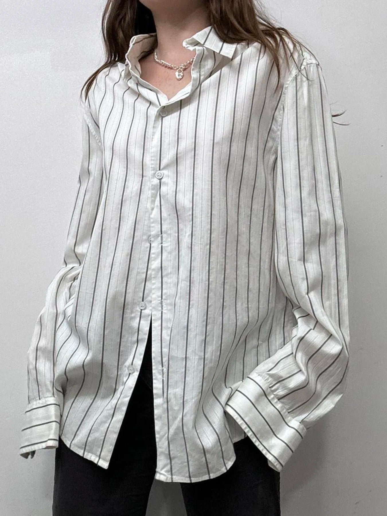 LIZAKOSHT  -  Striped Print Loose Shirt for Women Casual Single-breasted Oversized Blouses Streetwear Fashion Turn-down Neck Top