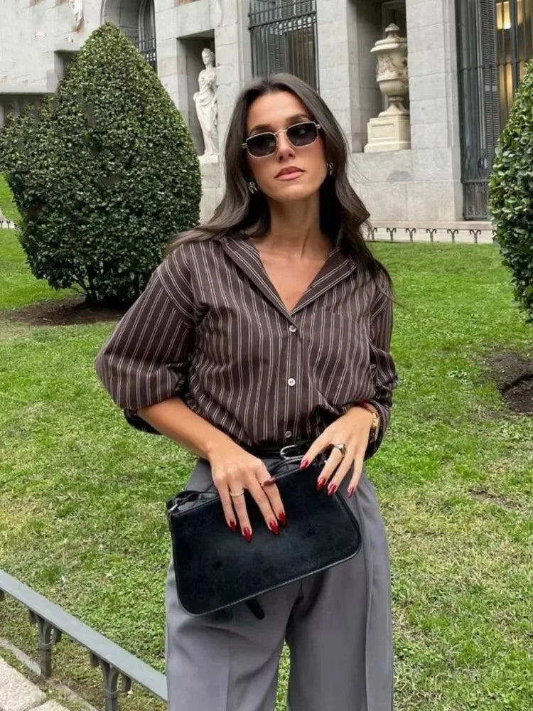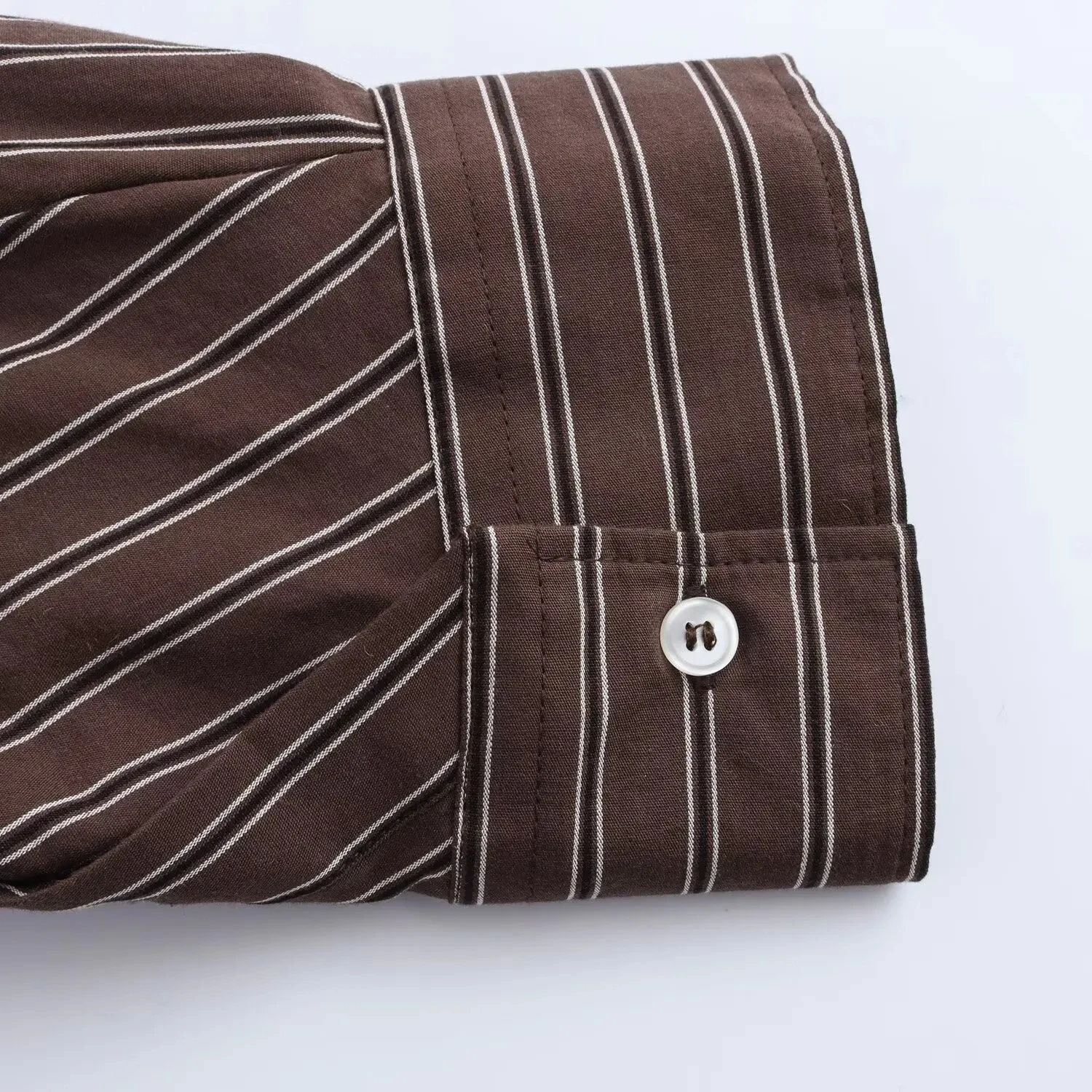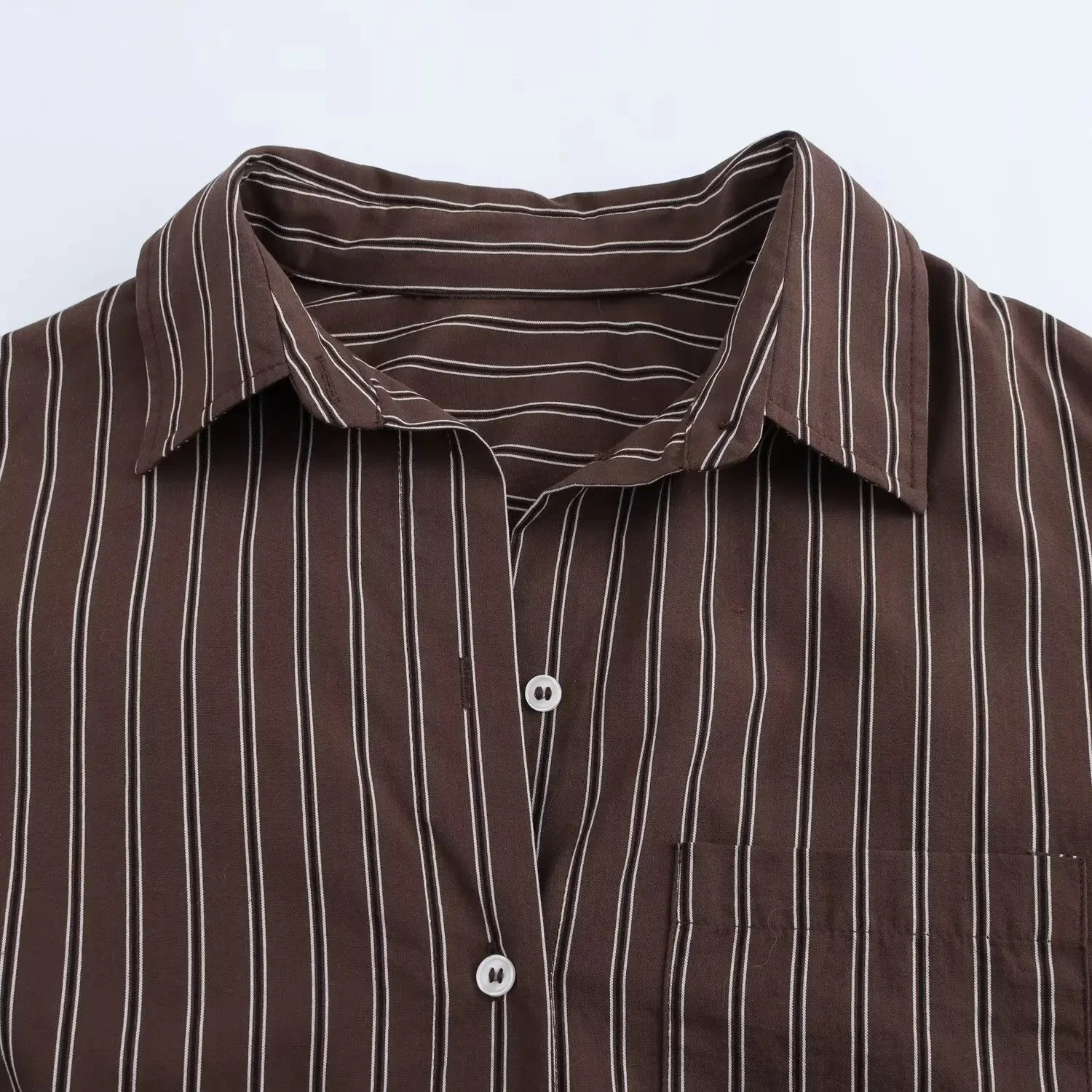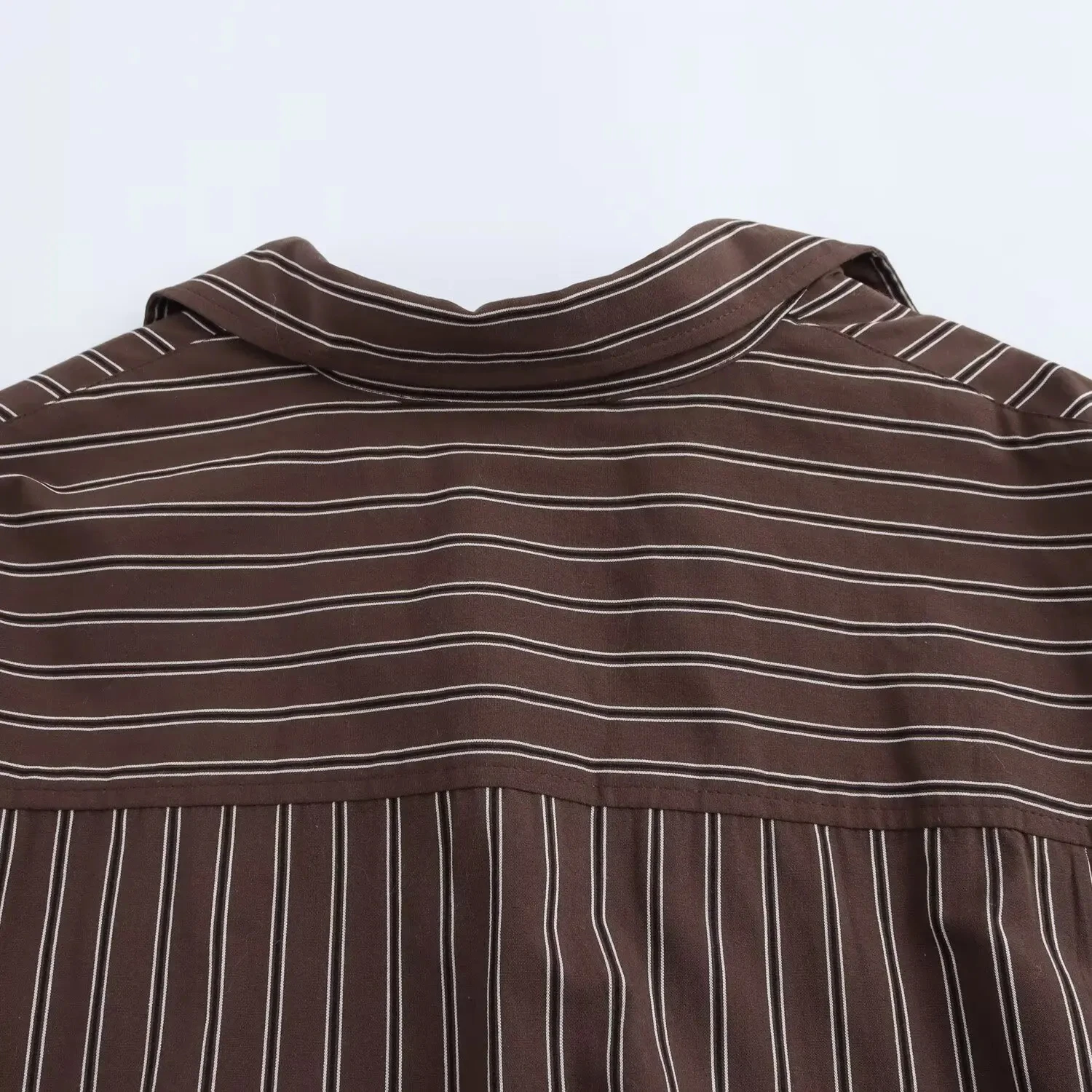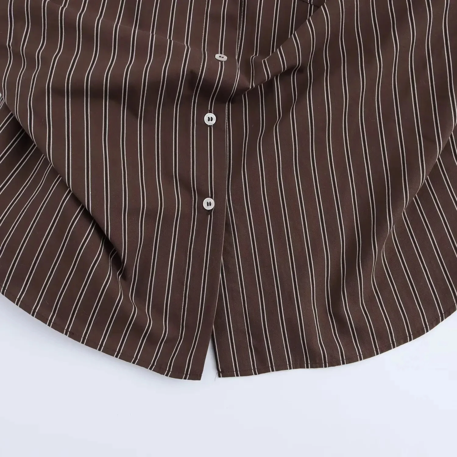 LIZAKOSHT - Striped Shirt Women Casual Loose Single Breasted Turn-down Collar Blouse 2025 New Summer Office Lady Simple Long Sleeve Shirts