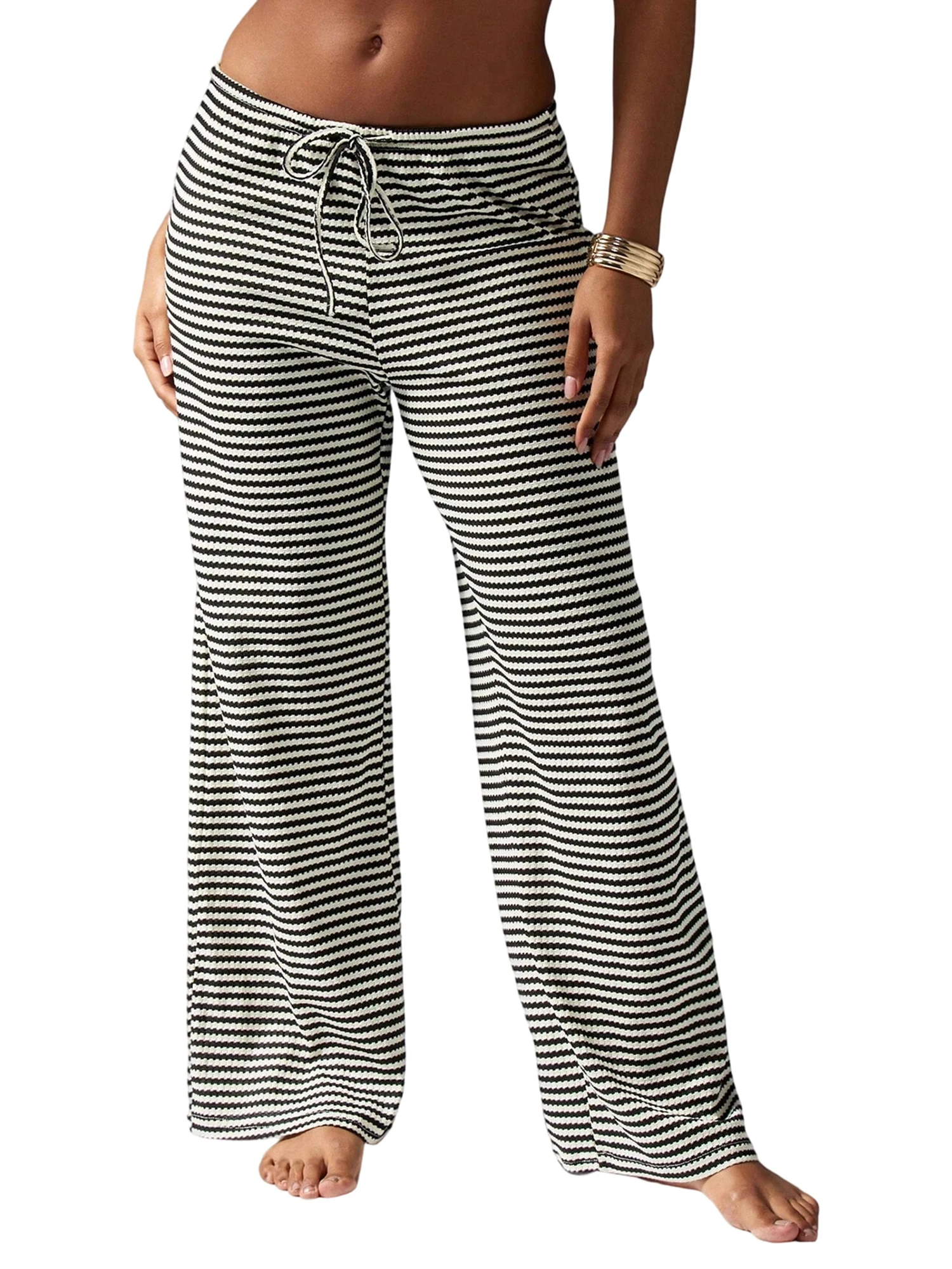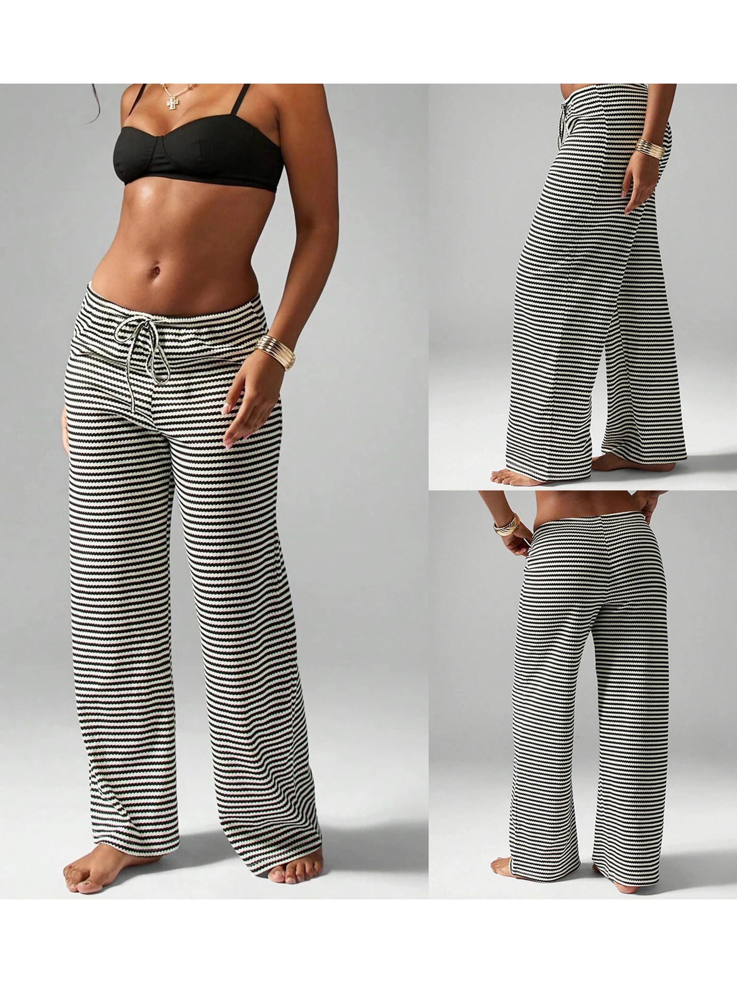 LIZAKOSHT - Stylish Women s Striped Trousers with Drawstring Waistband Loose Fit and Low Rise - Versatile Casual Pants for Any Occasion