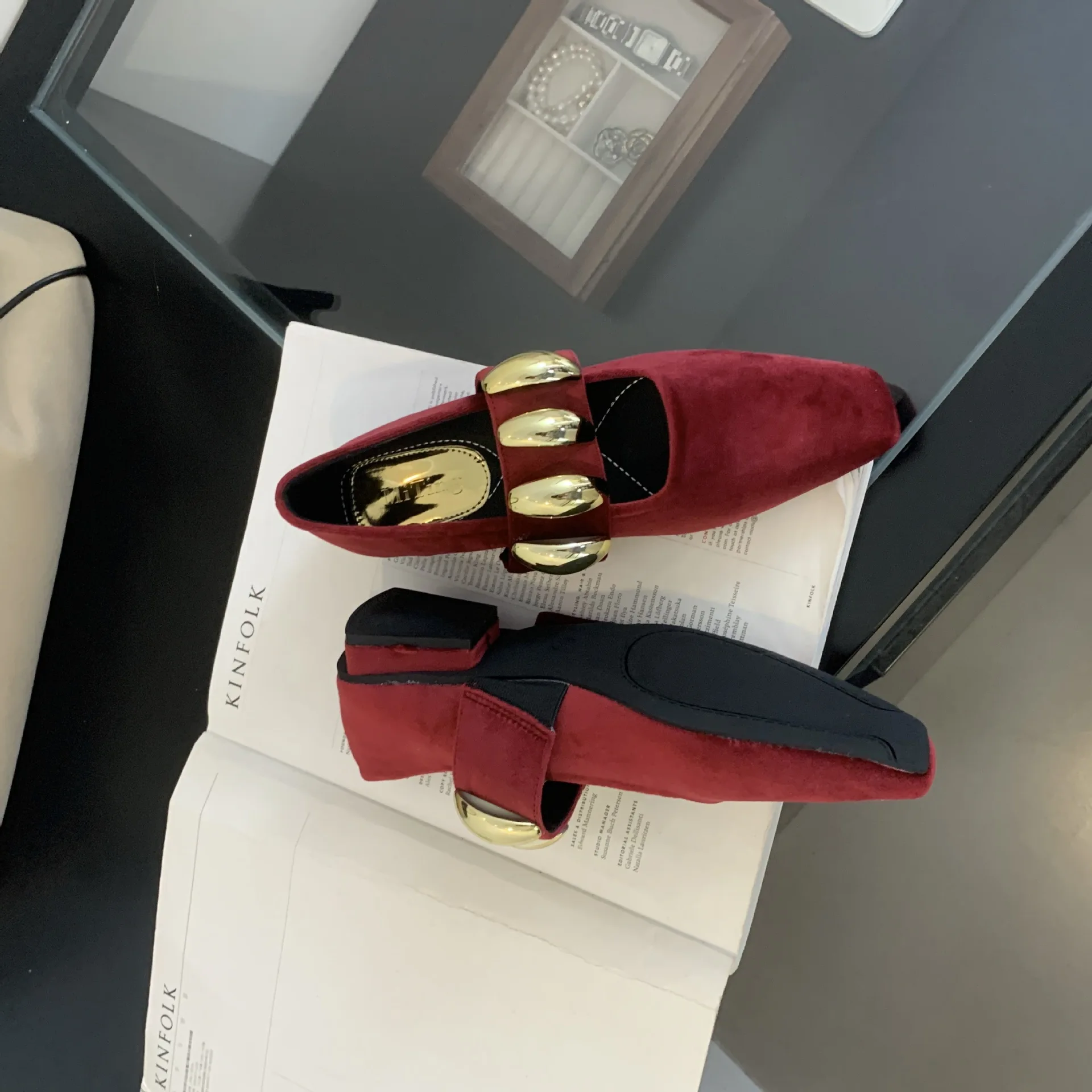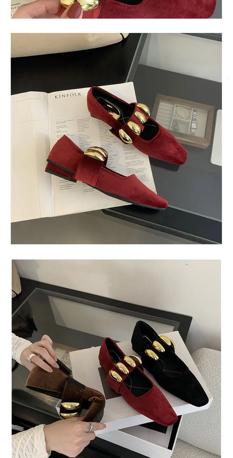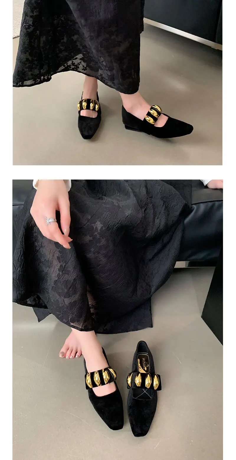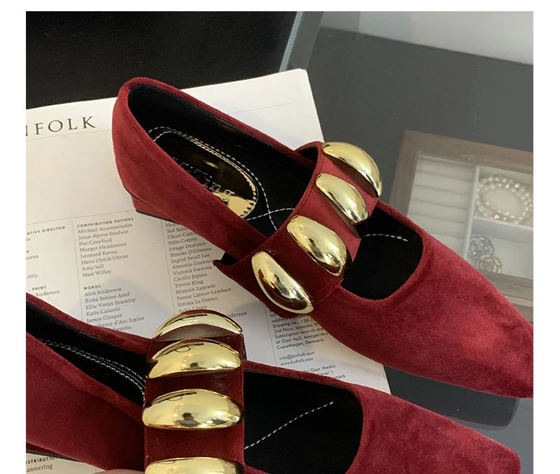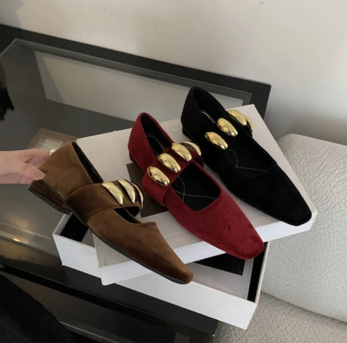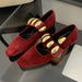 LIZAKOSHT - Suede Metal Buckle Square Toe Mary Jane Shoes Women Fashion Chunky Heel Loafers Female Leisure Comfort Muller Pumps Women