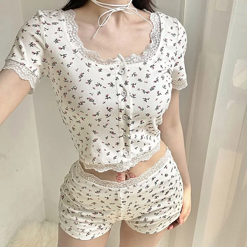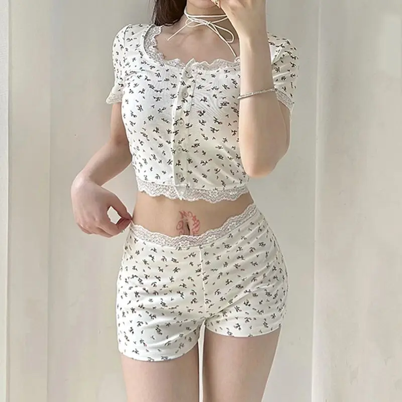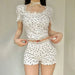 LIZAKOSHT - Suits Printed Tracksuits Women Sleepwear Regular Casual O-Neck Slim Skinny Fashion Sexy 2 Pieces Suit Sets (Tops+ Shorts)