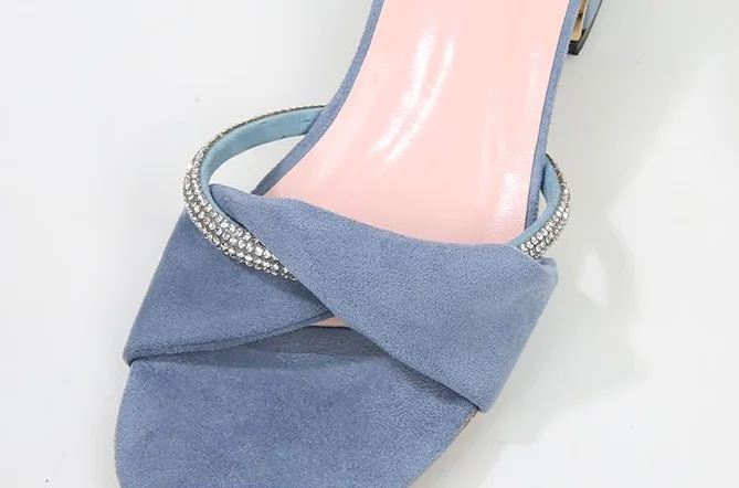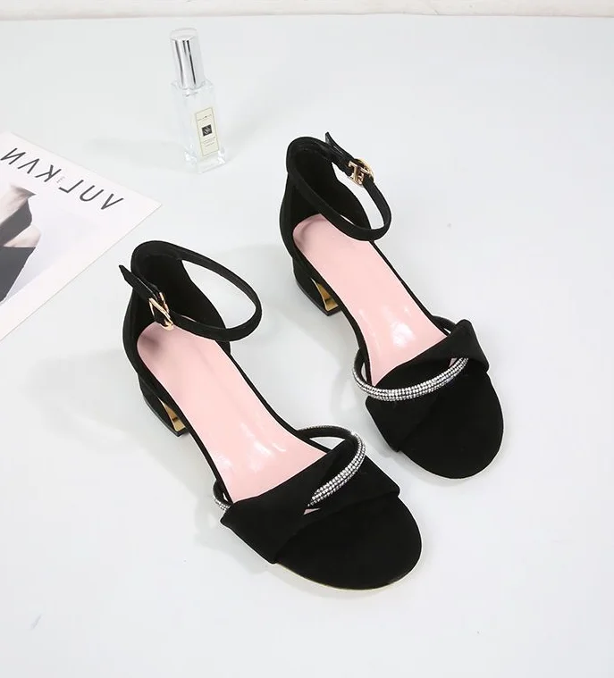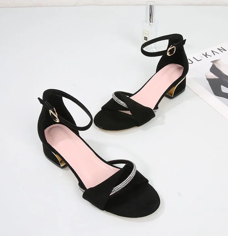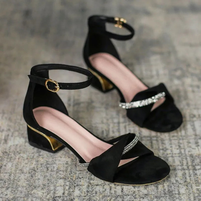 LIZAKOSHT - Summer 2024 Block Heel Sandals for Woman Chunky Women's Shoes with Medium Heels Footwear Office Work Diamond Rhinestones Thick H