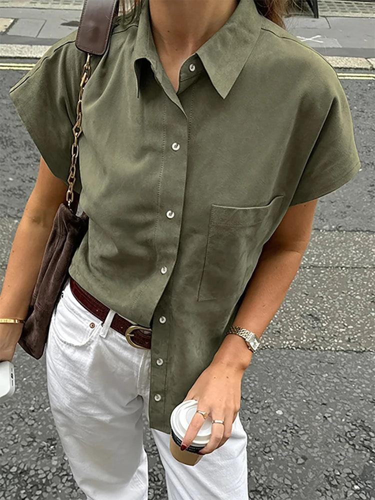 LIZAKOSHT - Summer 2025 Vintage Retro Green Blouse Shirt Women Turn-down Collar Single-breasted Pocket Sleeveless Casual Top For Women 55905