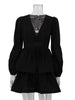 LIZAKOSHT - Summer Black Ruffled Mini Dress Female V-Neck Long Sleeve Solid Commute Elegant Party Dress Evening Women's Bodycon Dress