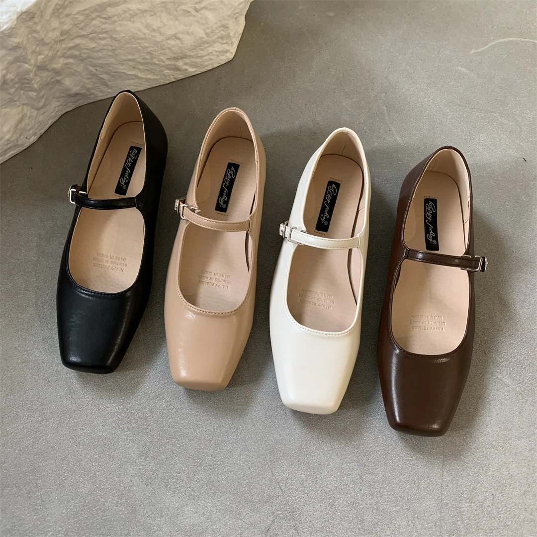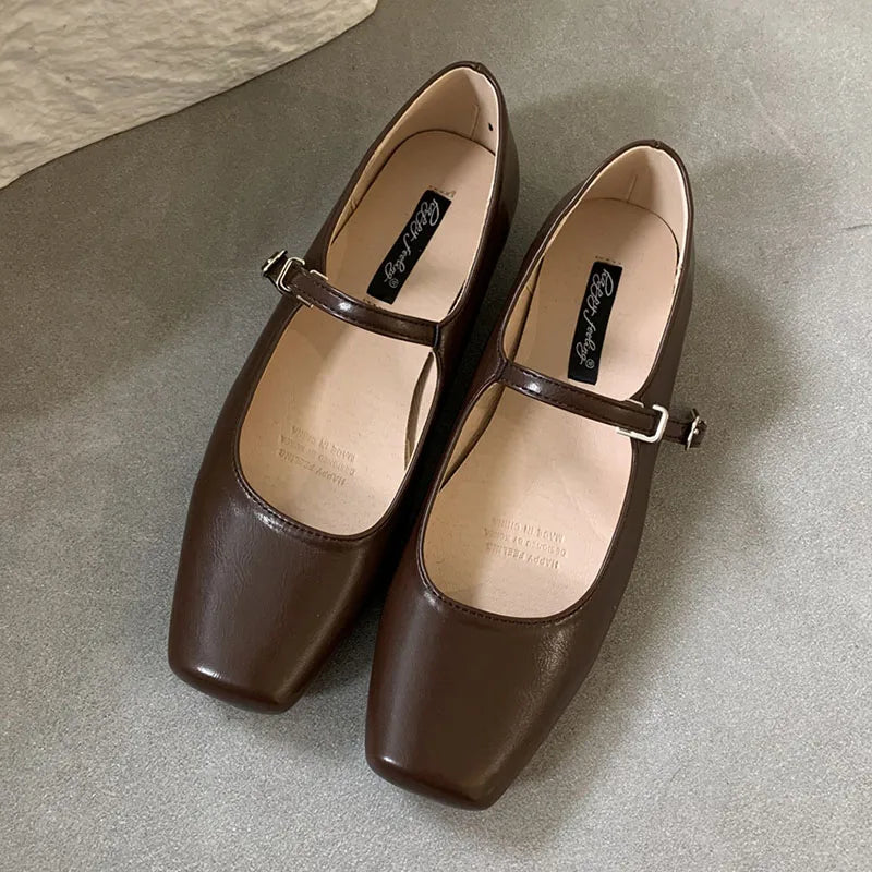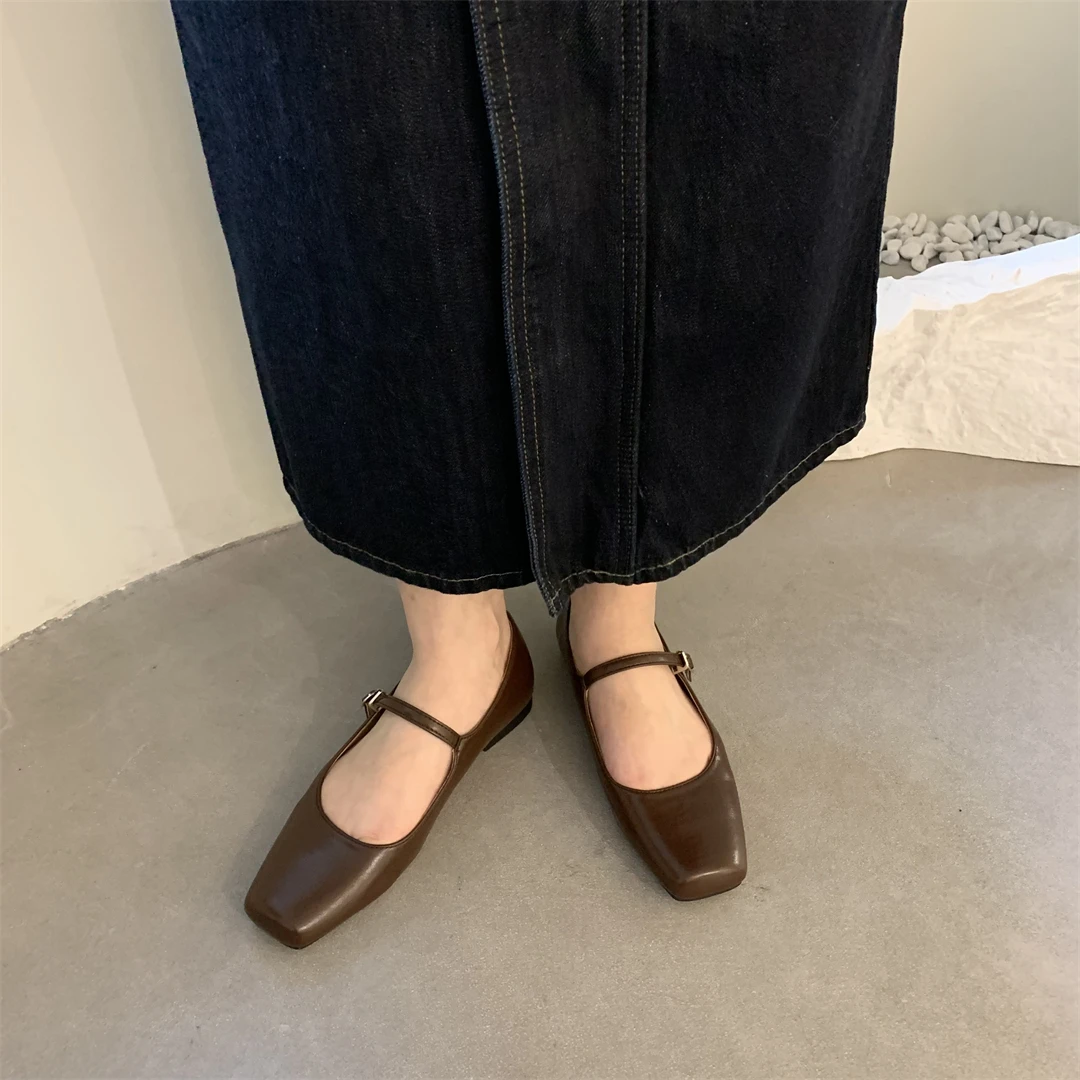 LIZAKOSHT - Summer Brown New Brand Women Flats Fashion Square Toe Shallow Mary Jane Shoes Soft Casual Ballet Shoes Slingback Shoes