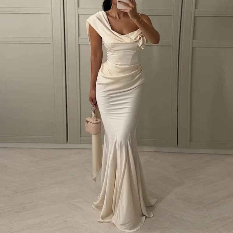 LIZAKOSHT - Summer Elegant Ribbon Sling Long Dress Women Chic 3D Flower Sleeveless Backless Fishtail Slim Maxi Robe 2025 Evening Party Dress