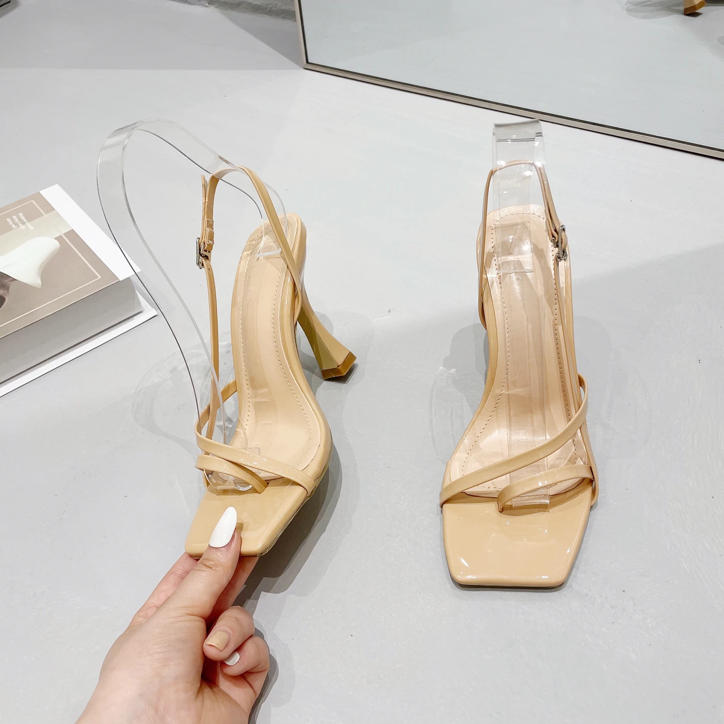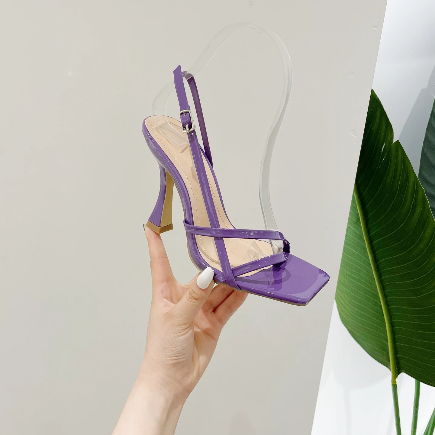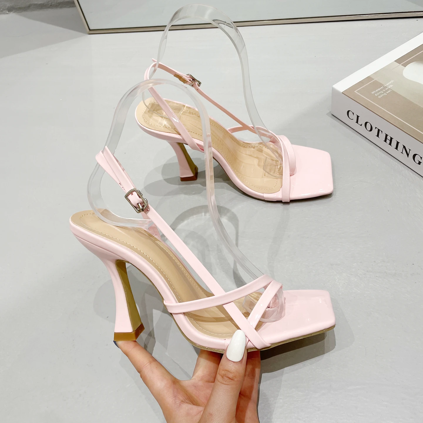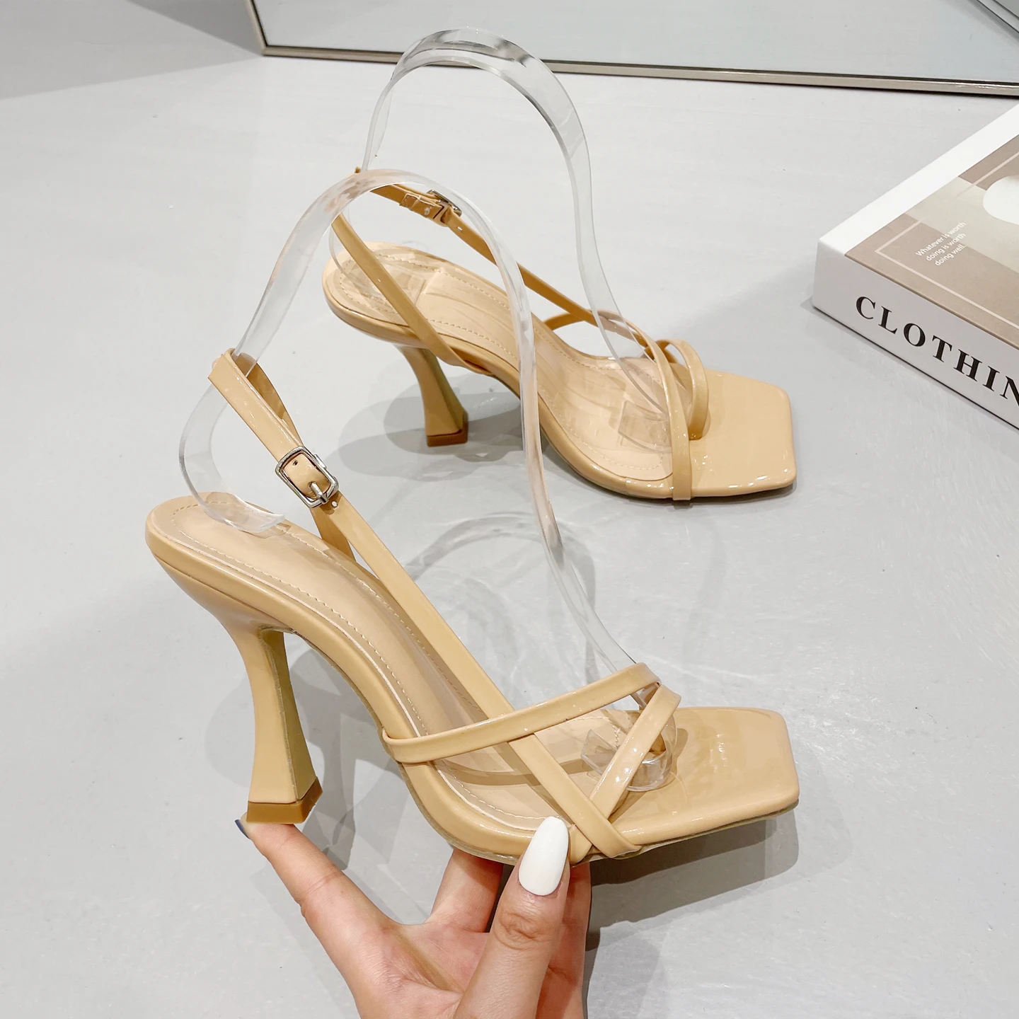LIZAKOSHT - Summer Fashion Square Toe Patent Leather Thong Sandals Buckle Strap Super High Heel Party Dance Shoes