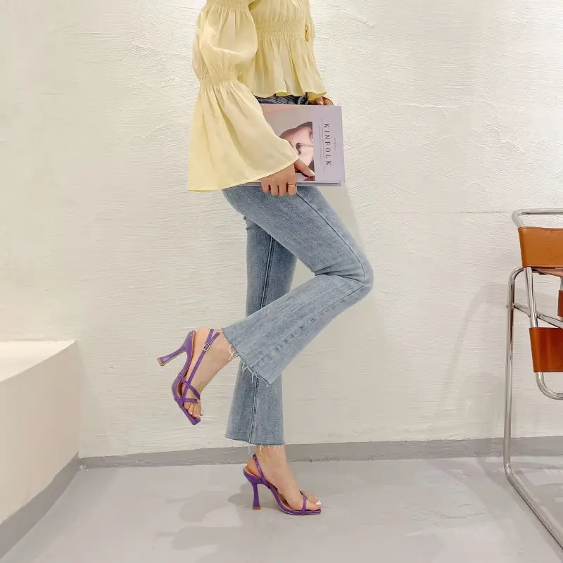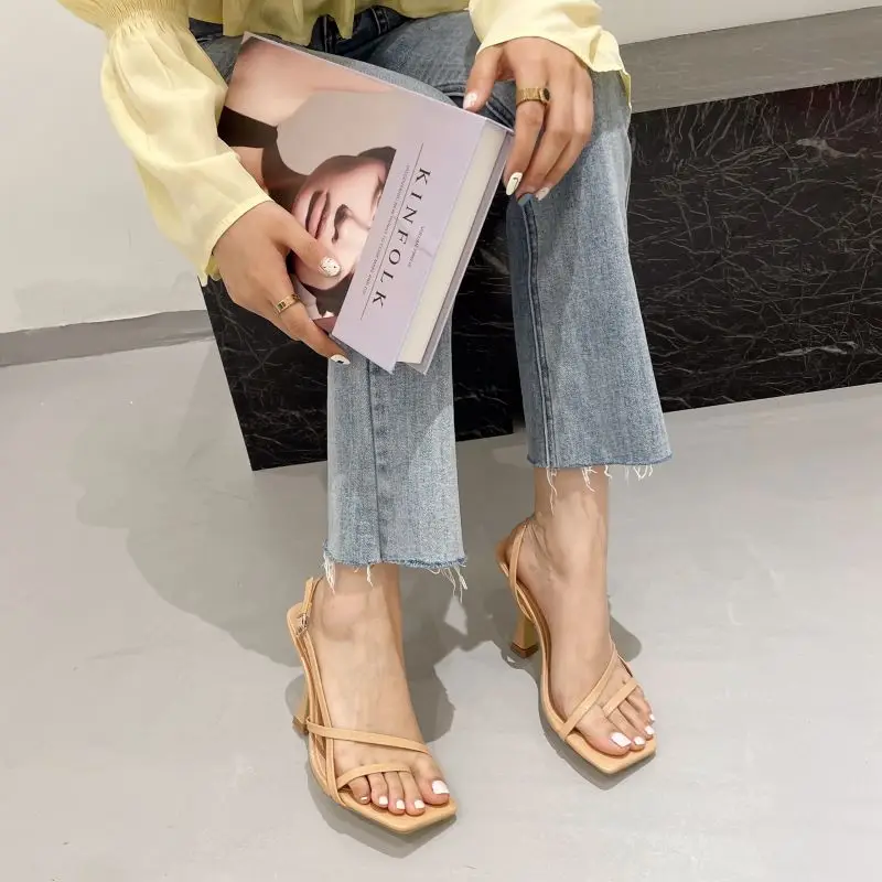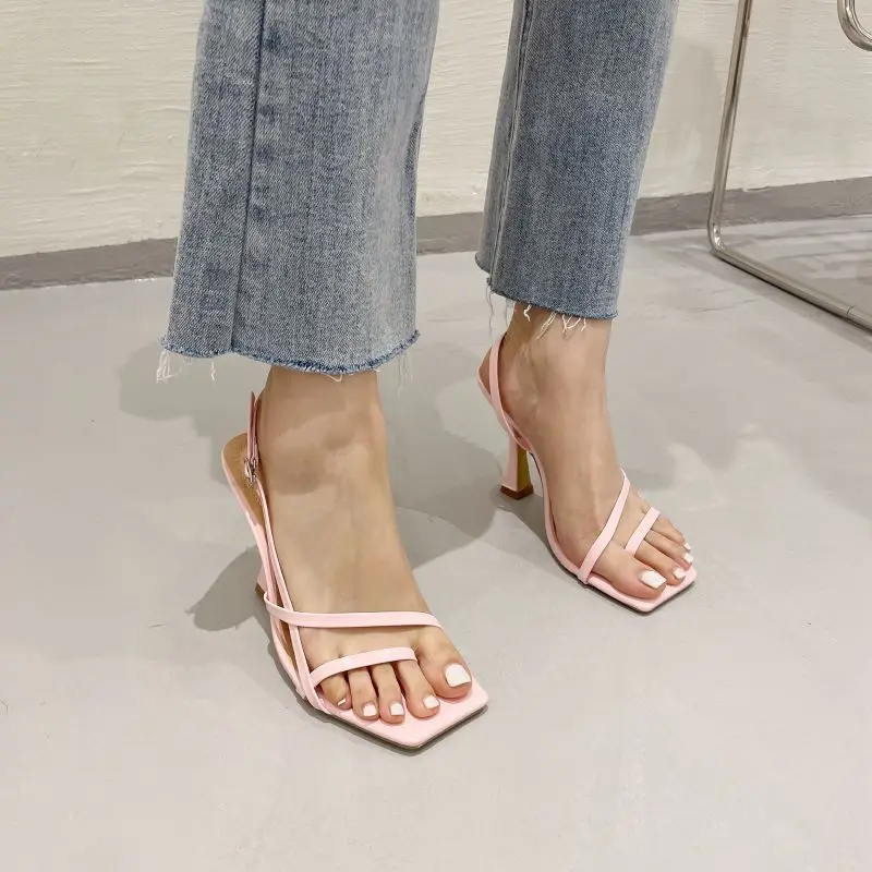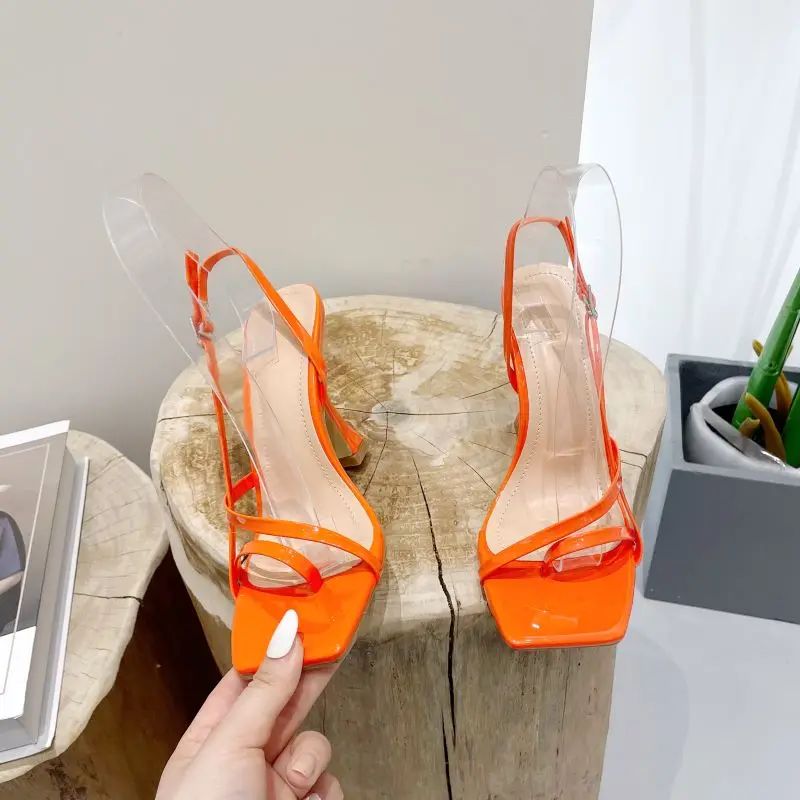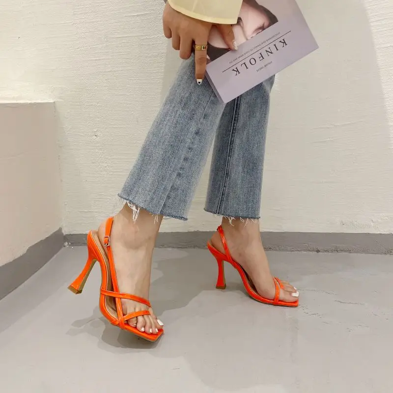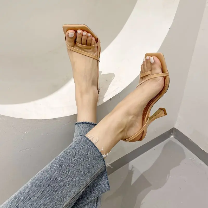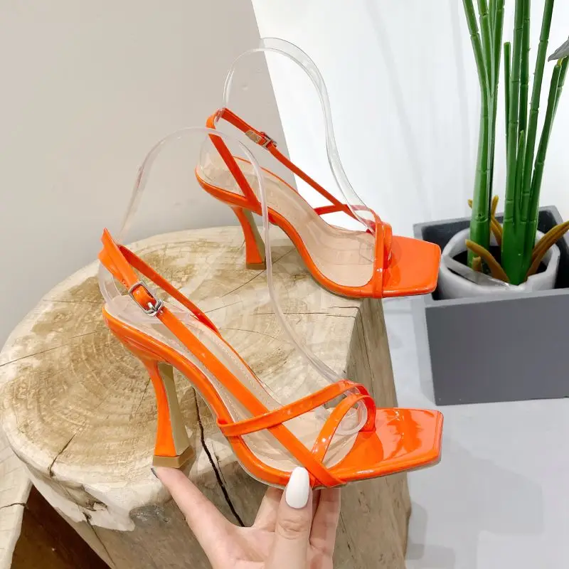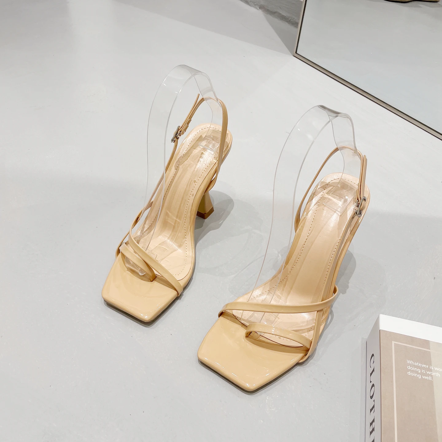LIZAKOSHT - Summer Fashion Square Toe Patent Leather Thong Sandals Buckle Strap Super High Heel Party Dance Shoes