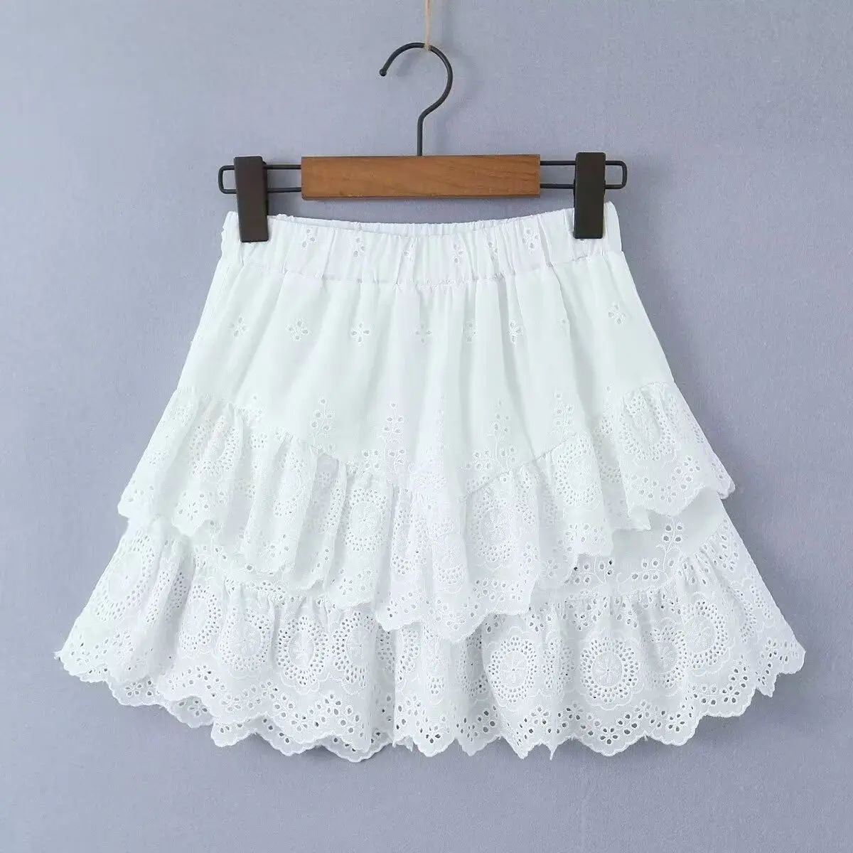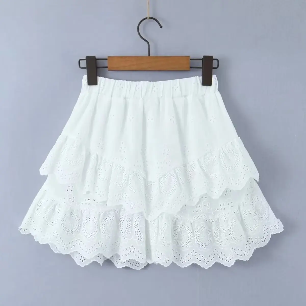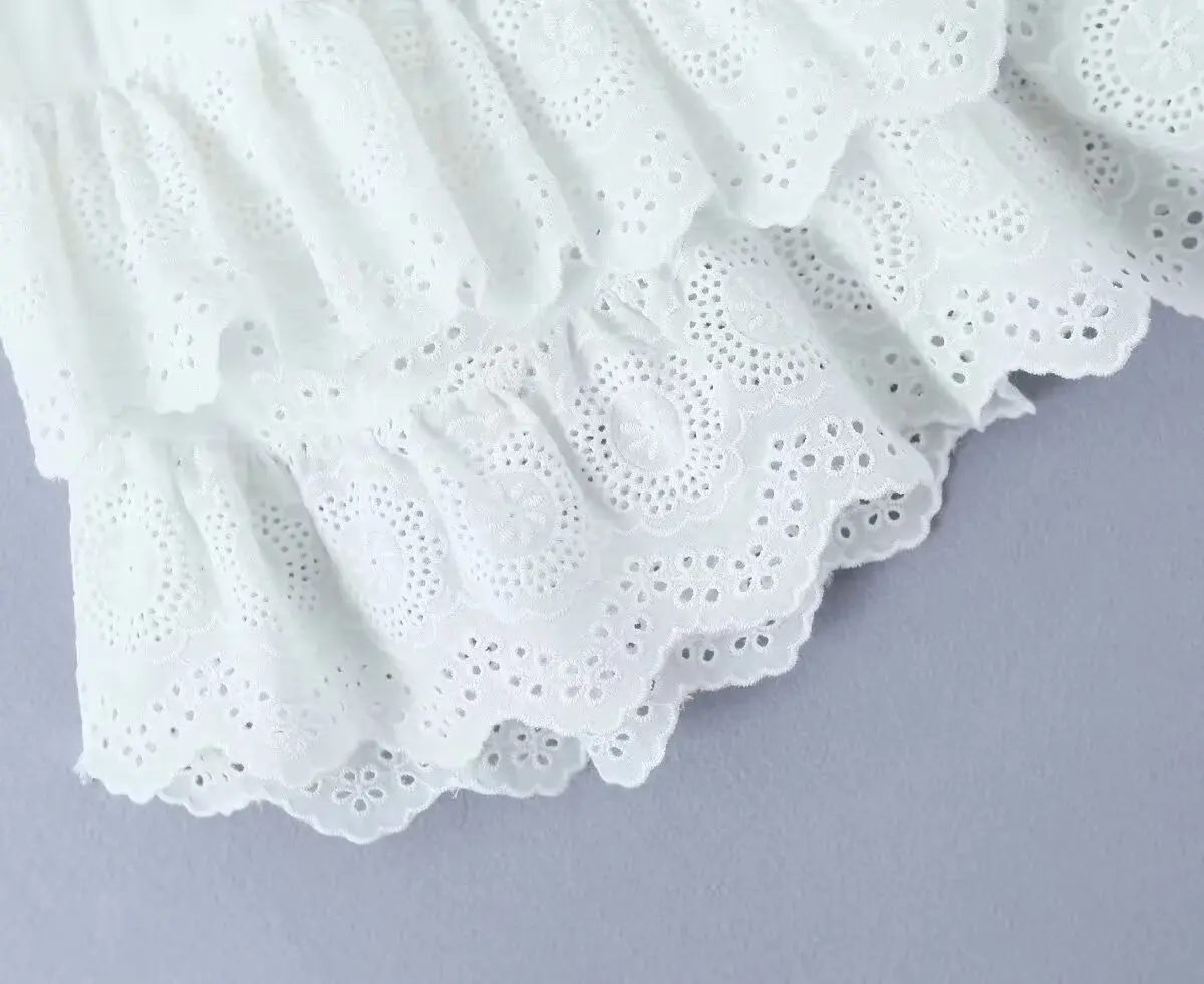 LIZAKOSHT - Summer French Elegant Lace Cake Skirt Fashion Mini Skirt Women Vintage Cotton A-line High Waist White Skirts Womens