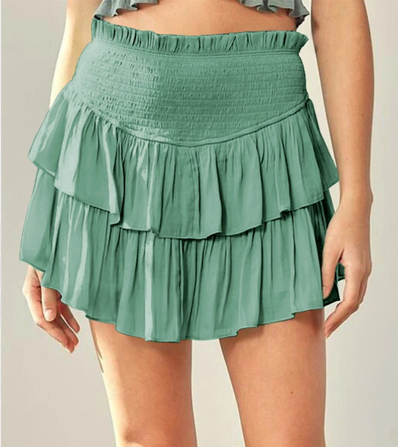 Lizakosht Summer Hot Sale New Fashion Plain Color Ruffle Flap Versatile Halfskirt Women's Summer New Fashion Pleated Skirt