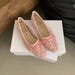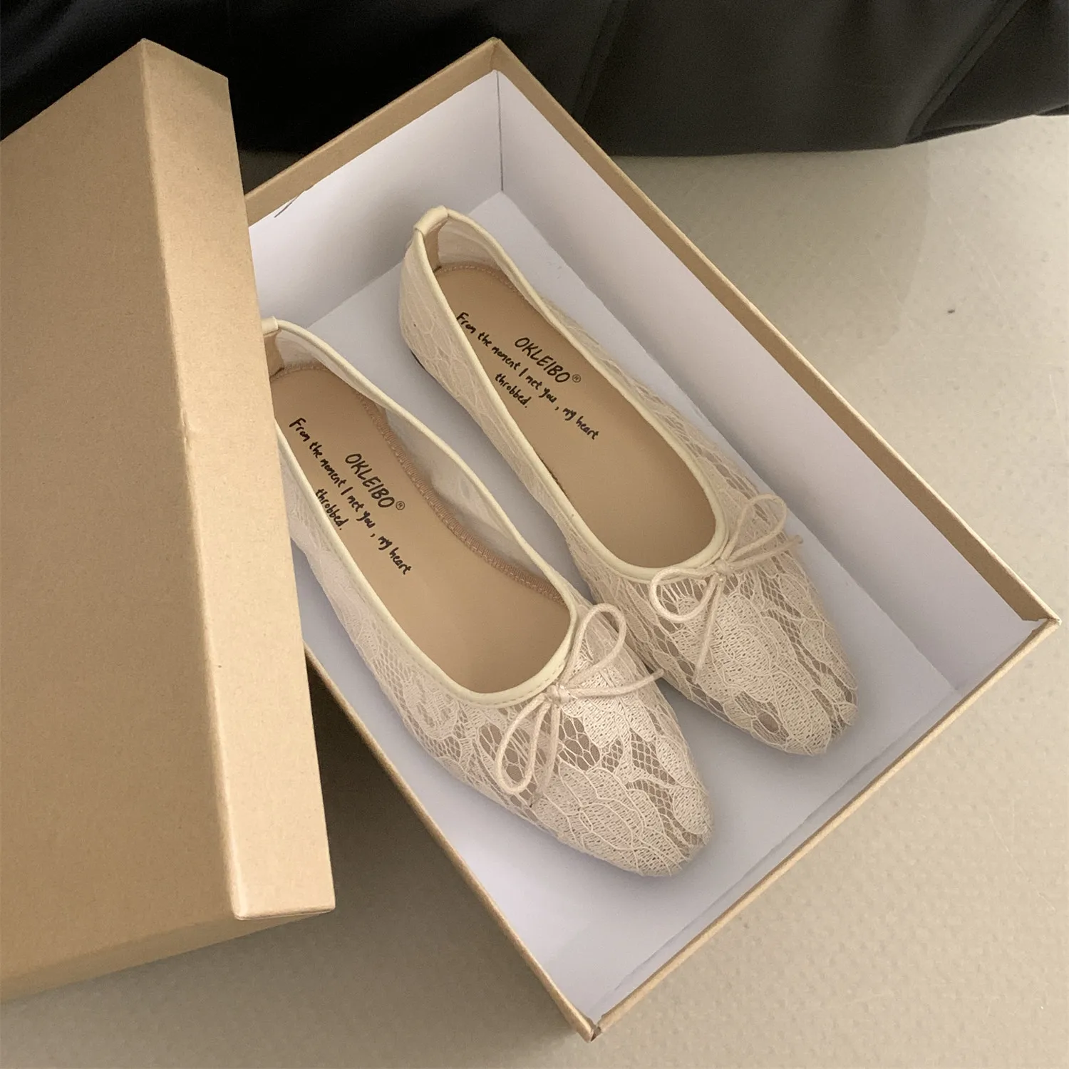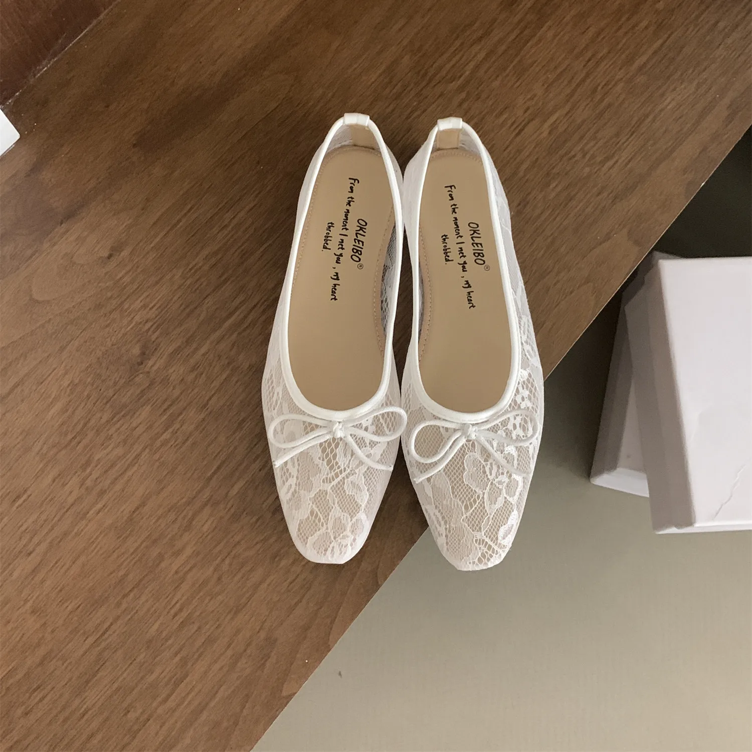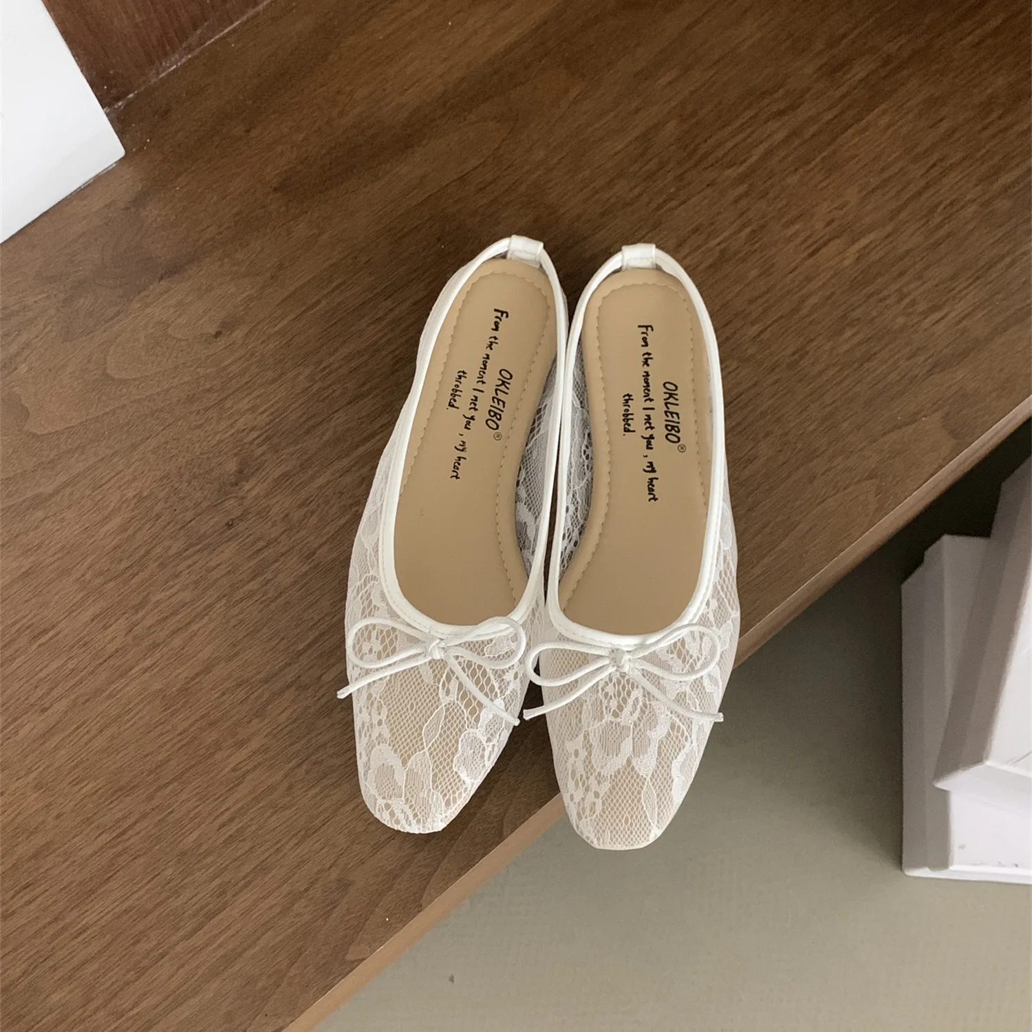 LIZAKOSHT - Summer Mesh Lace Shoes Women Fashion Sandals Flat Luxury Brand Butterfly-Knot Breathable Square Toe Slip-on Flat Female Shoes