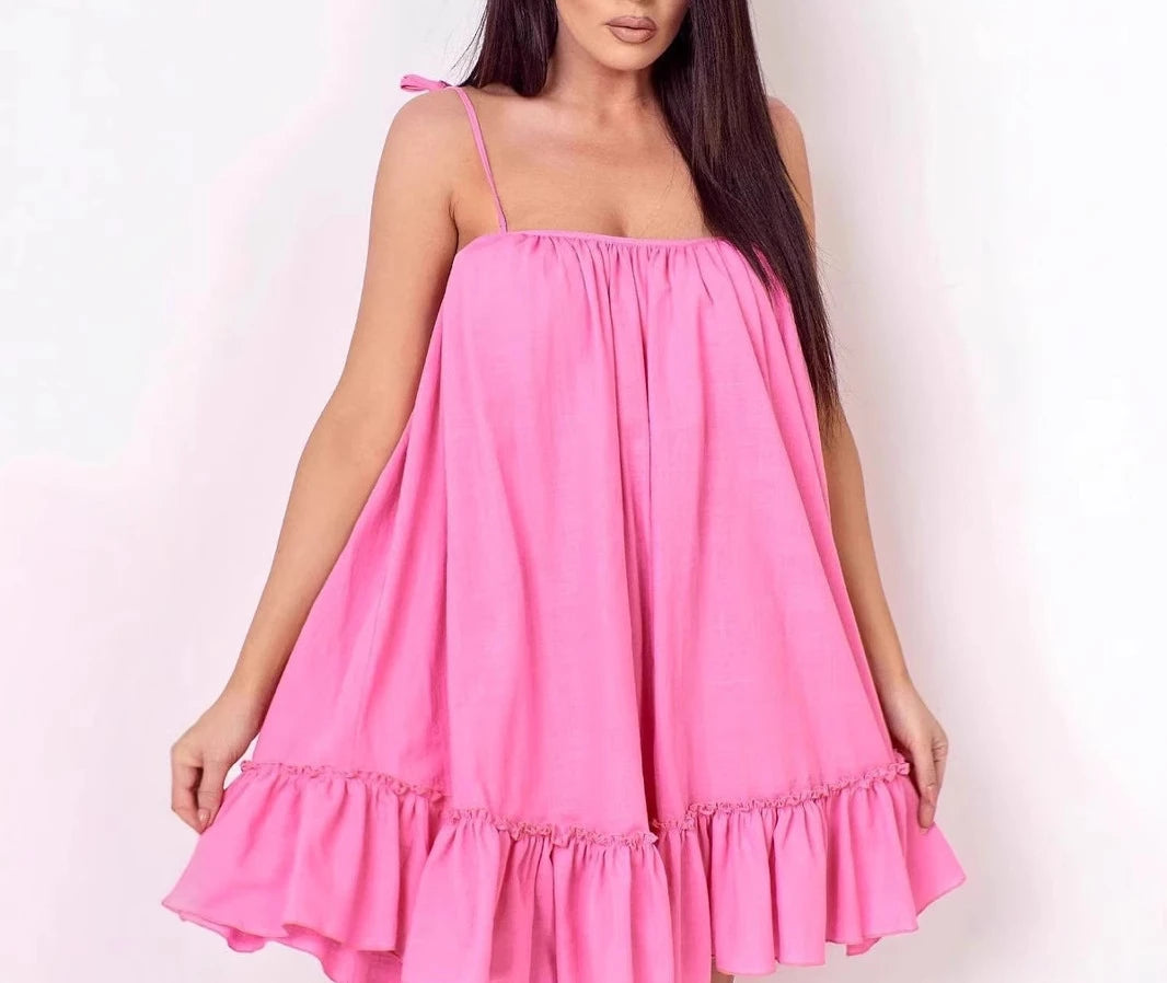 LIZAKOSHT  -  Summer New Solid Color Loose Lotus Leaf Hanging Strap Sexy backless Dress