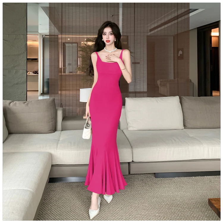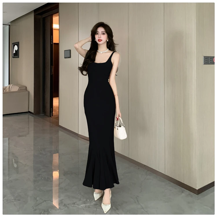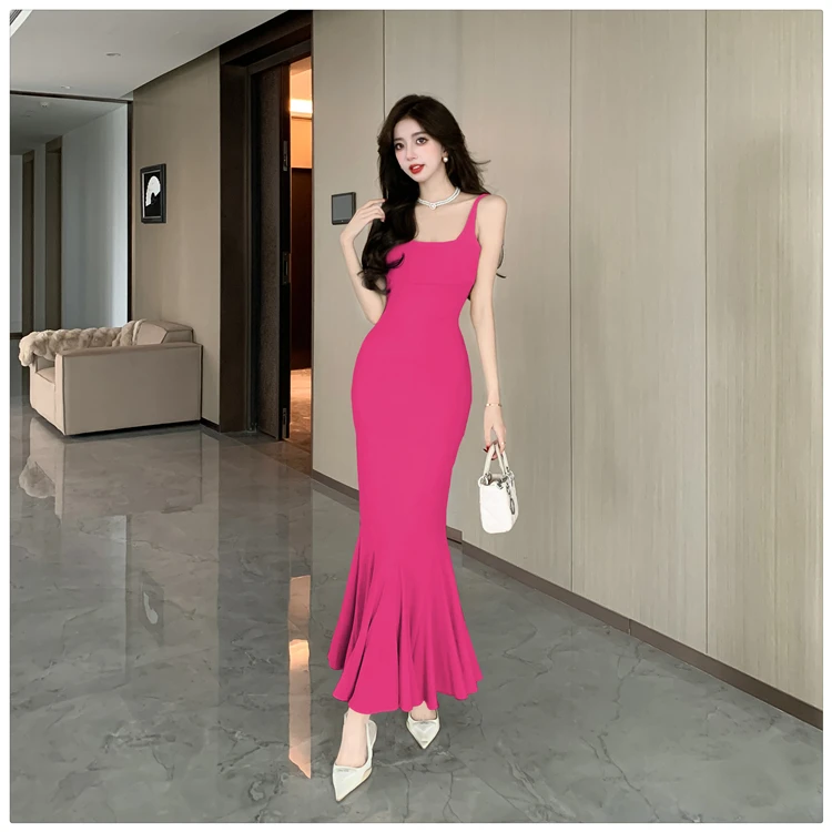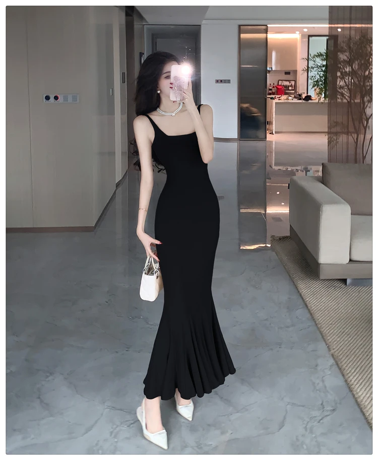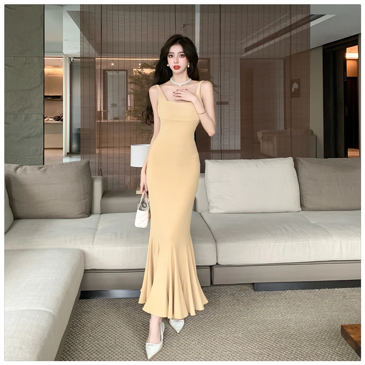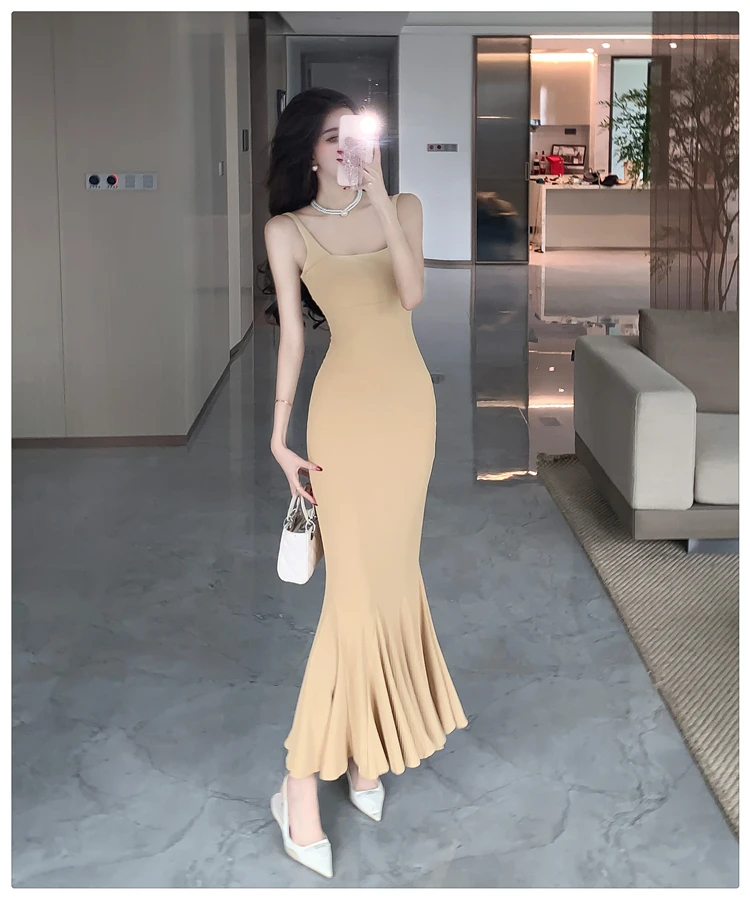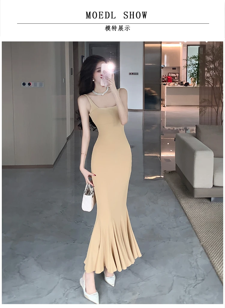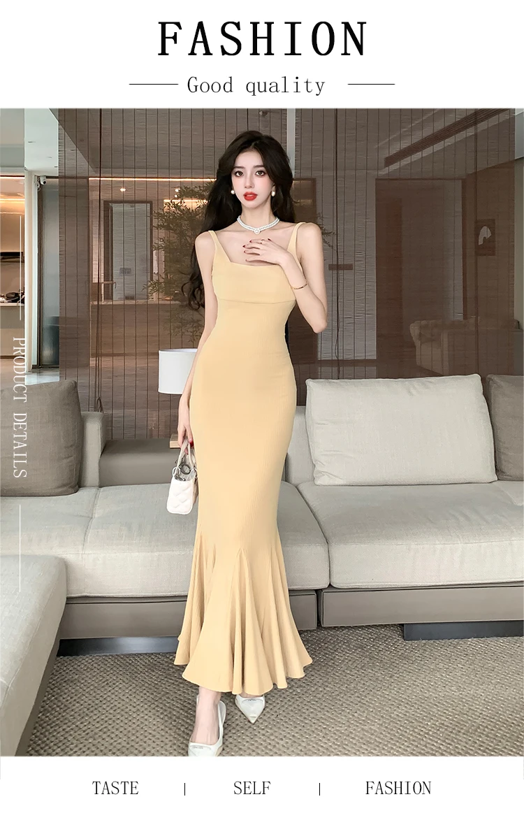 LIZAKOSHT - Summer New Style Design Sense Elegant dress French Style Slip Drss Tight Waist Fishtail Hip Long Dress
