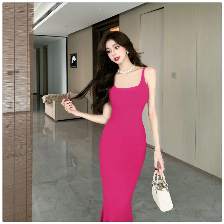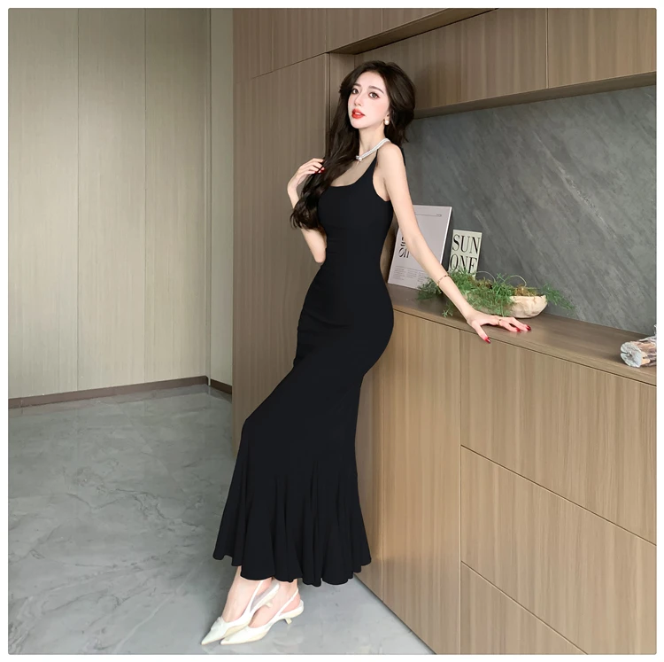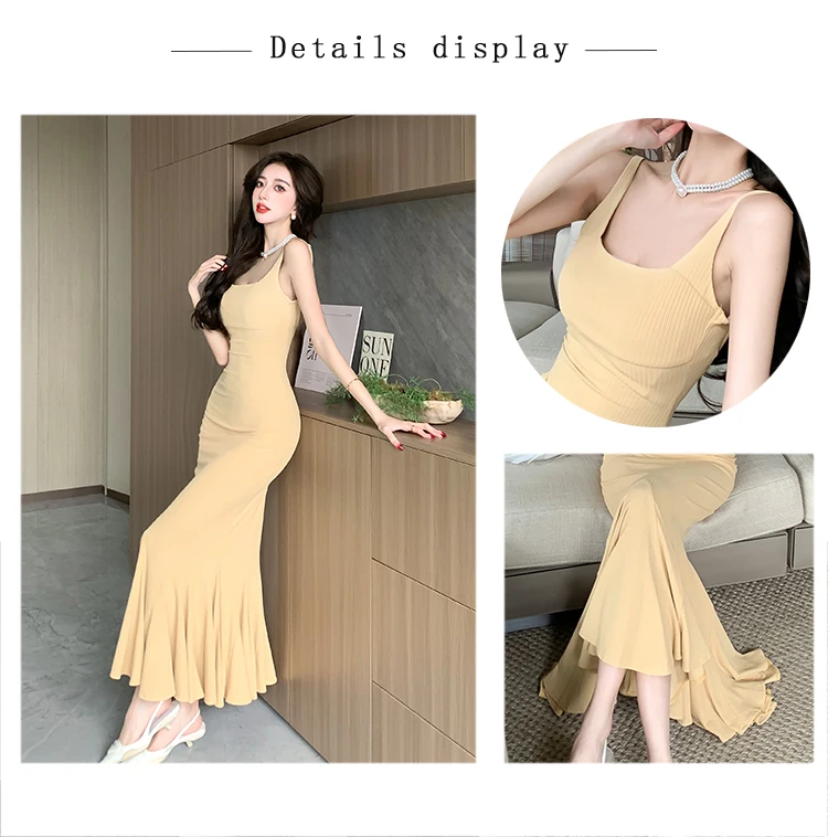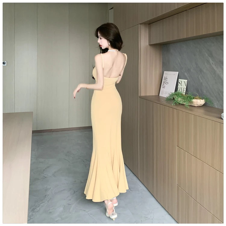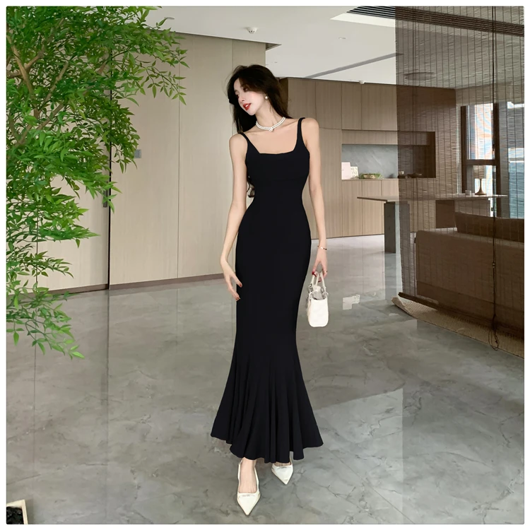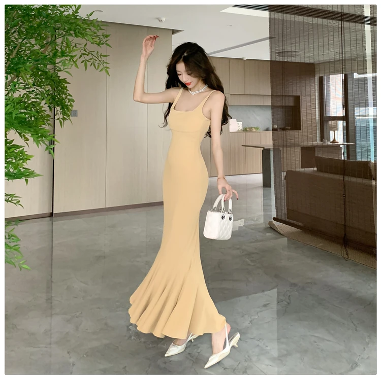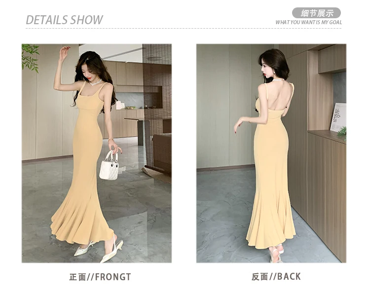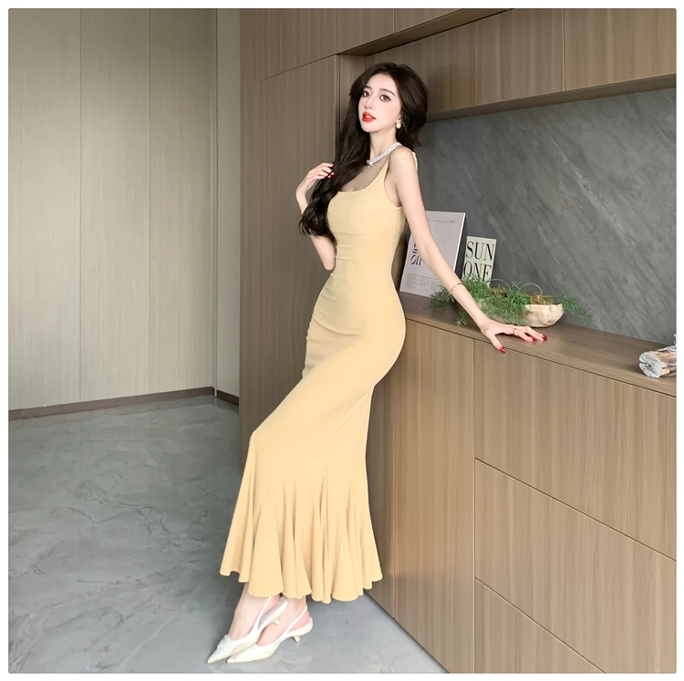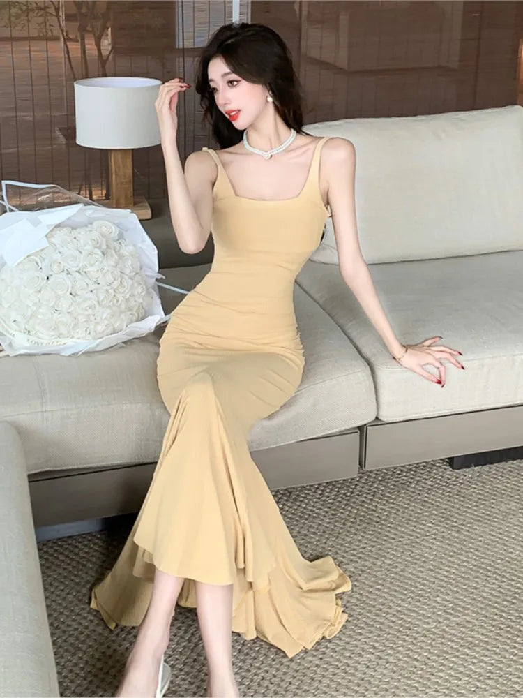 LIZAKOSHT - Summer New Style Design Sense Elegant dress French Style Slip Drss Tight Waist Fishtail Hip Long Dress