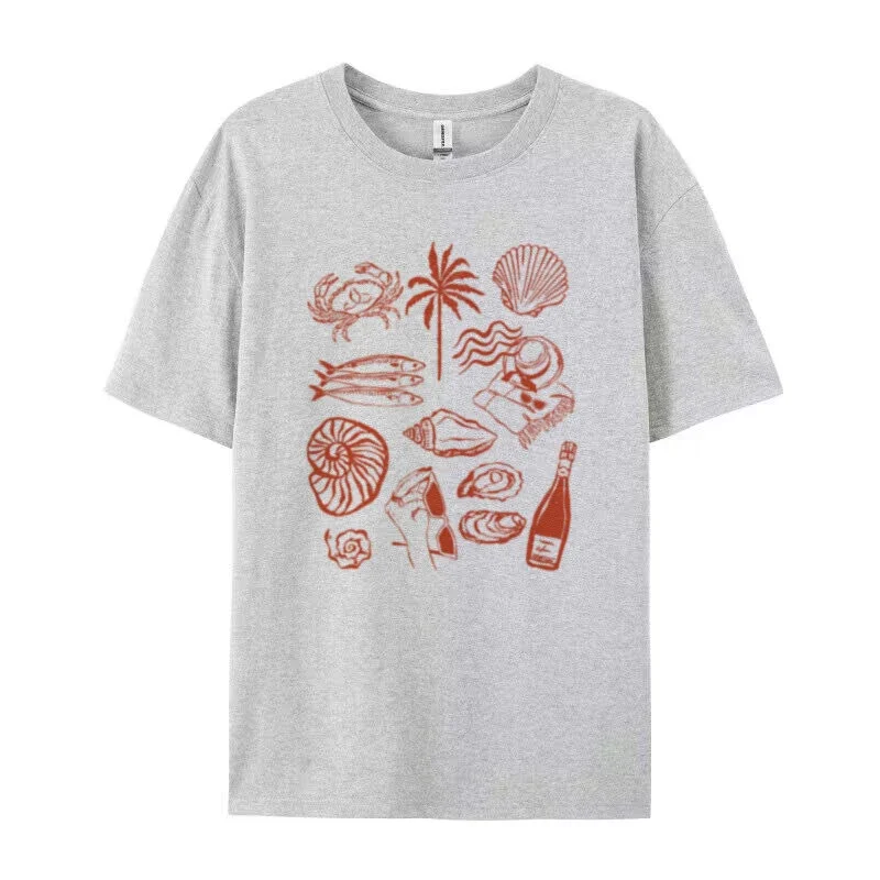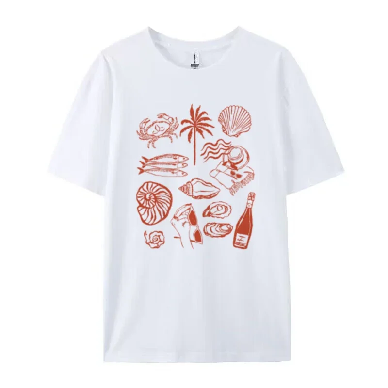LIZAKOSHT  -  Summer Ocean Coastal Graphic Tees Trendy Retro Aesthetic La Dolce Vita T Shirt Cute Oyster Wine Shirt Beach Vacation Women Tops