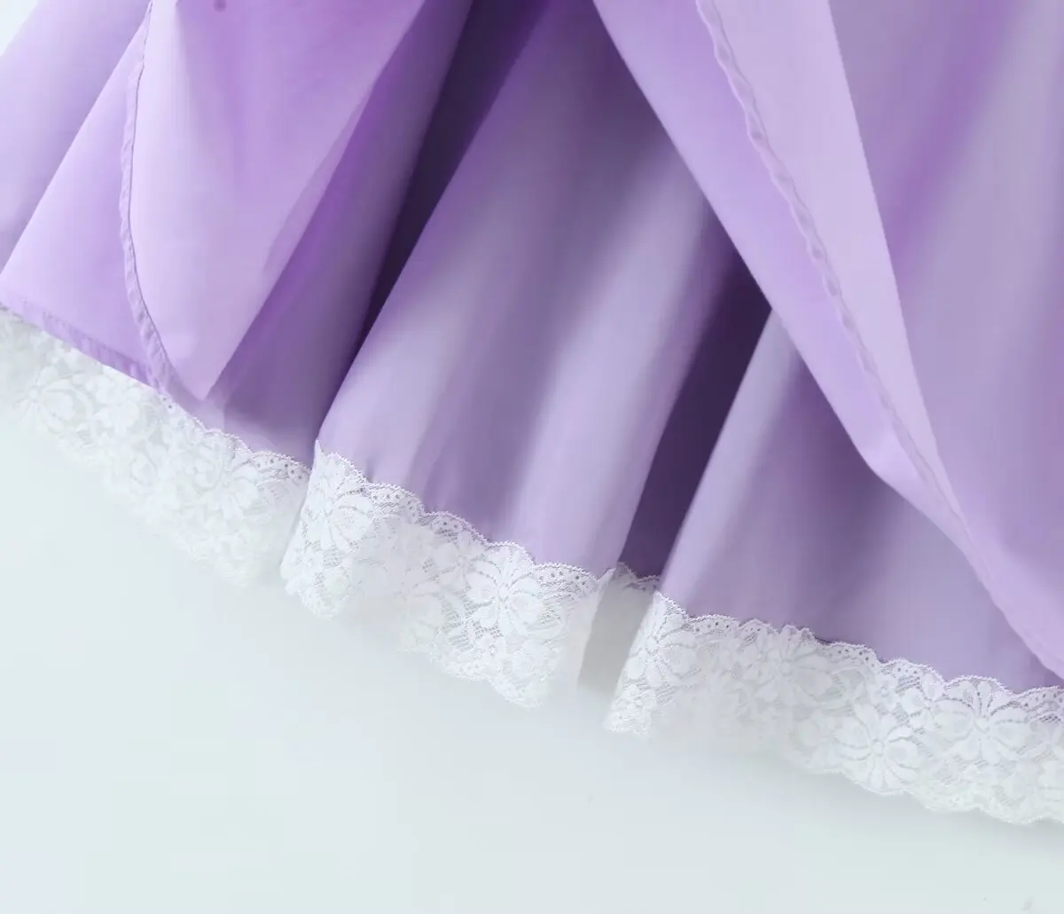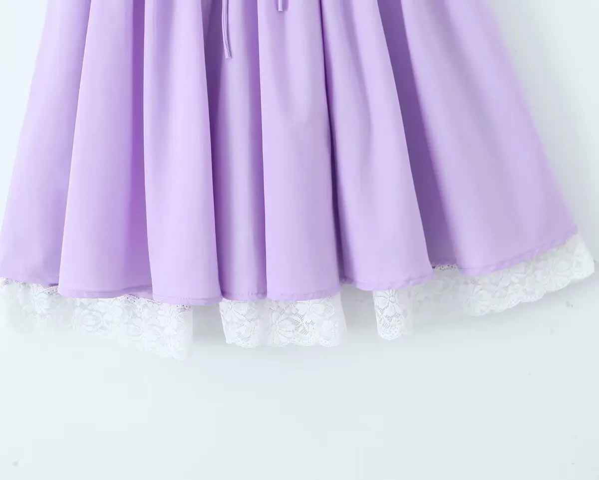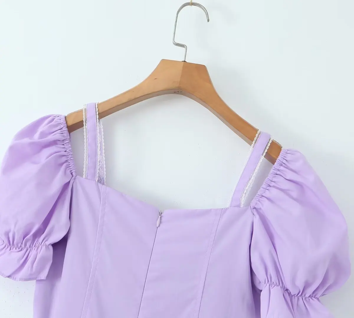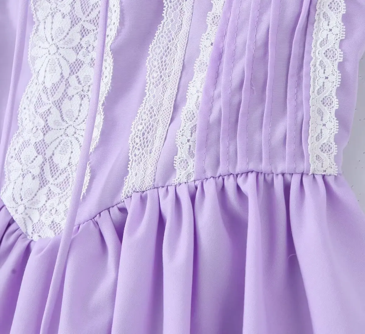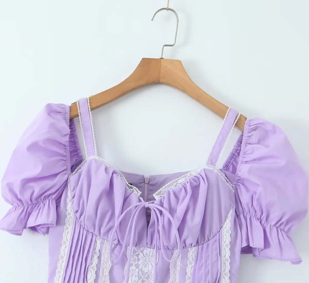 LIZAKOSHT - Summer Sweet Princess Mini Dress Women Puff Sleeve Spliced Lace Slim Waist Ruffle Hem Cake Party Robe Fairy Vestidos