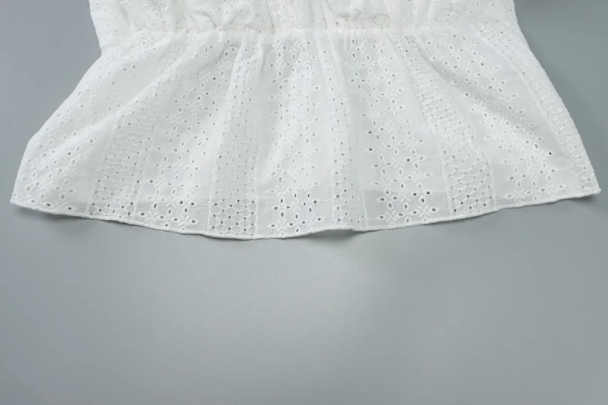 LIZAKOSHT - Summer White Hollow Out Vest For Women Lace-Up Casual Patchwork Slim Backless Cropped Y2k Top Women's Spaghetti Tank Top