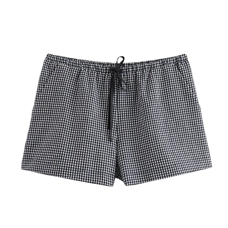 LIZAKOSHT - Summer Women Drawstring Mid Waist Casual Plaid Shorts