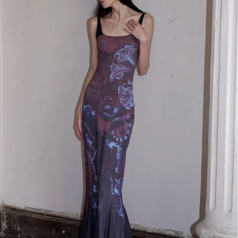 LIZAKOSHT - Summer Women Fashion Elegant Print Sexy Backless Sling Streetwear A-LINE Dress Female Casual Slim Sleeveless Pullover Dresses
