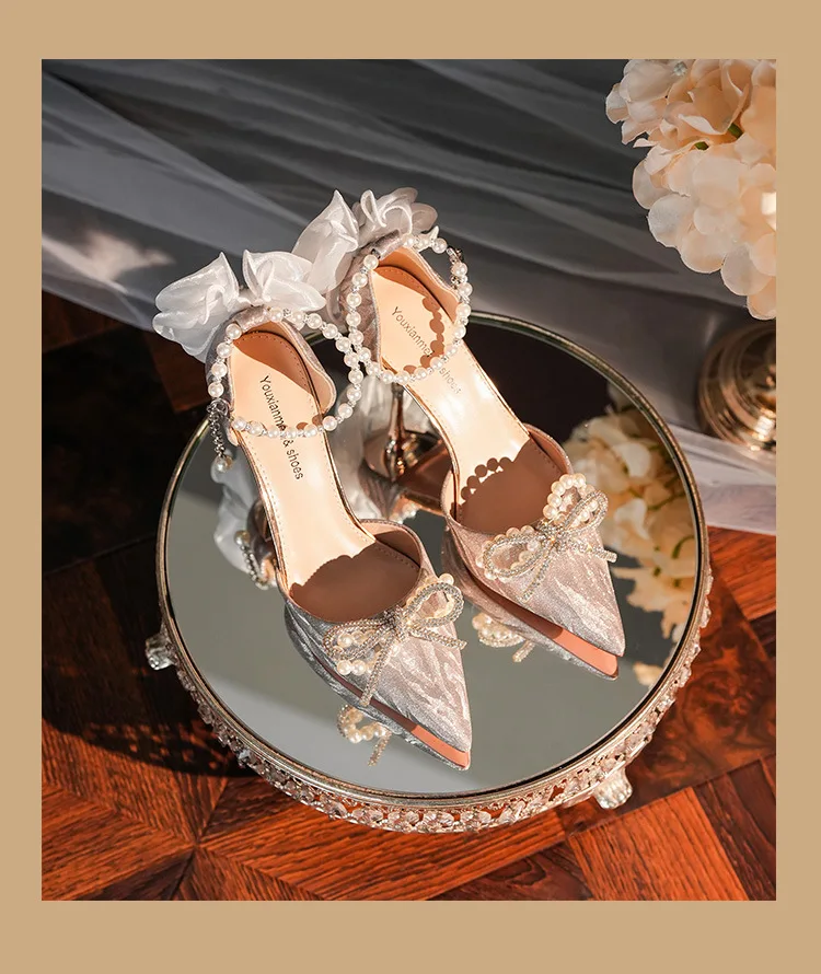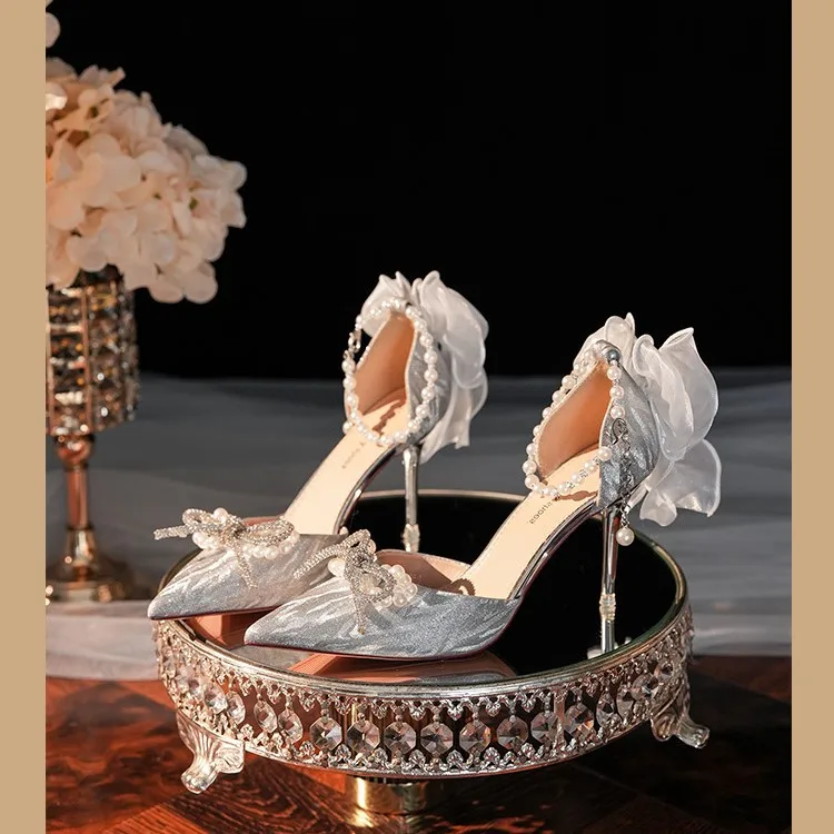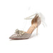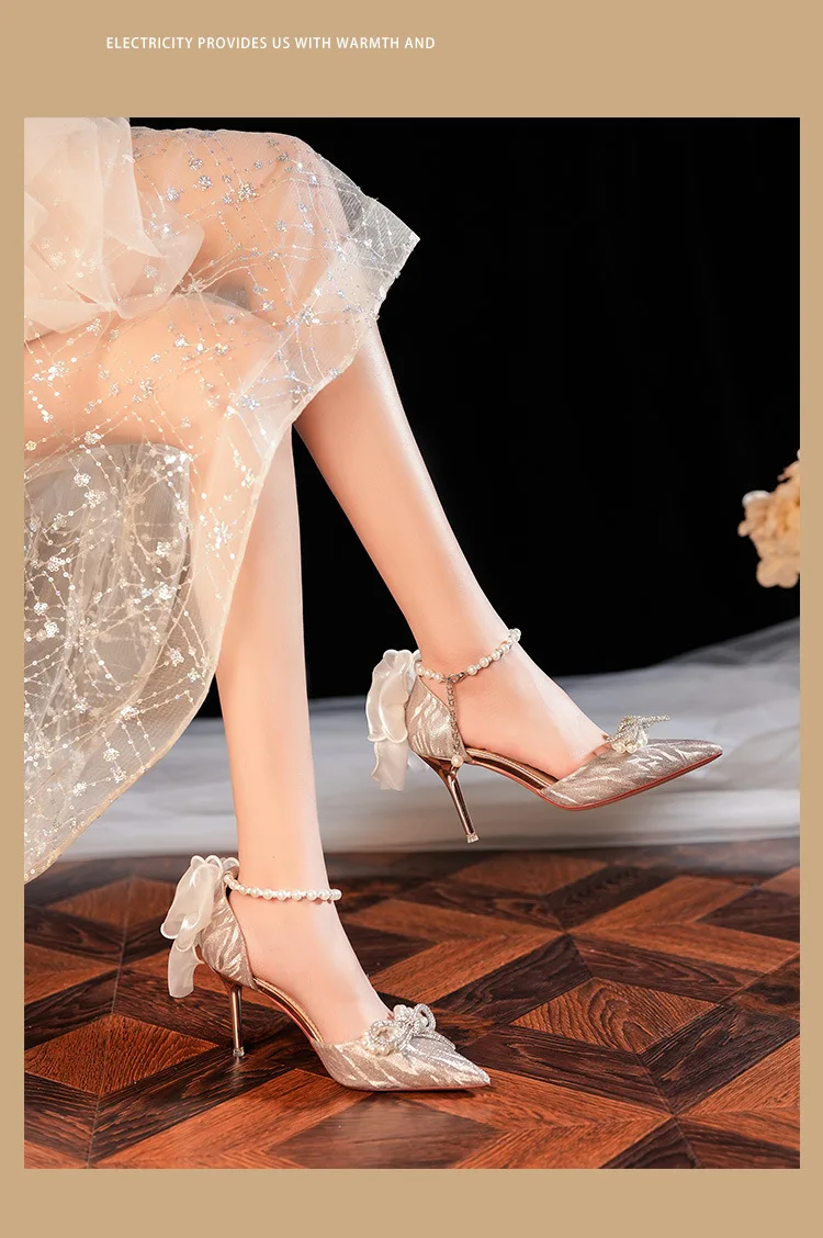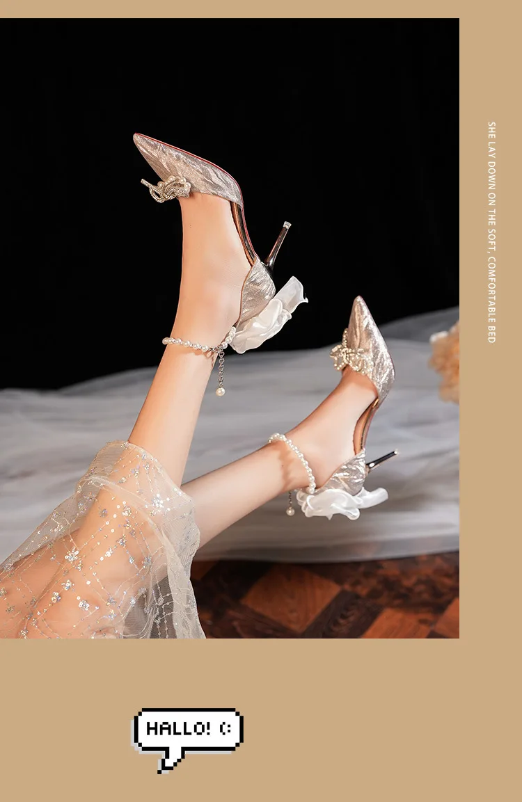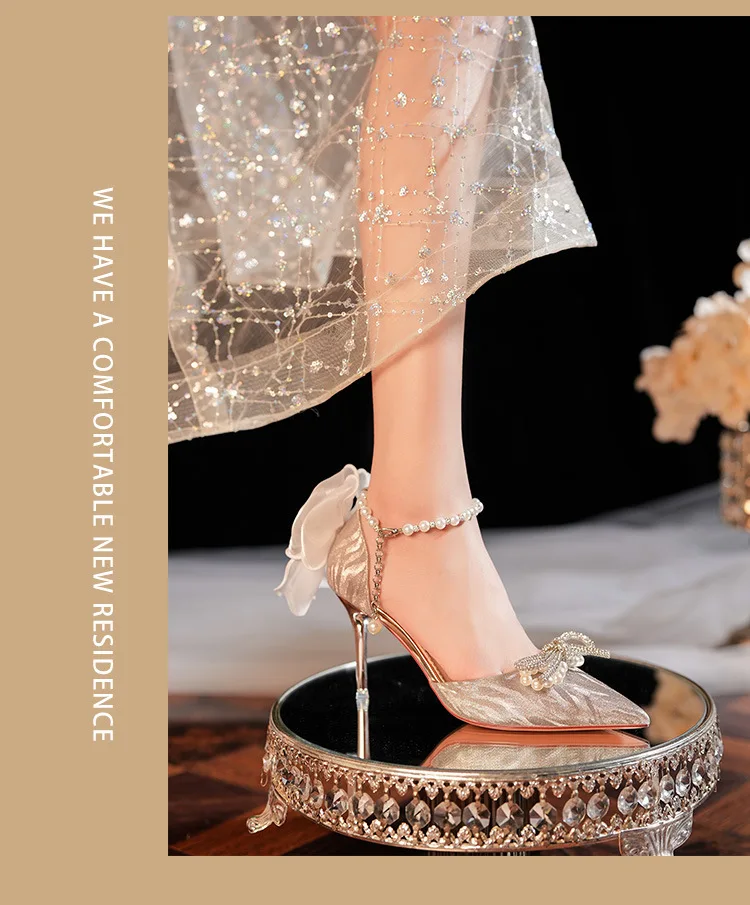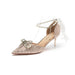 LIZAKOSHT - Summer Women's Sandals Luxurious Pointed Toe Rhinestone Bow Flower Stiletto Heels Banquet Wedding Shoes High Heels