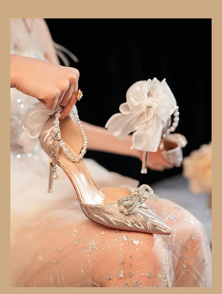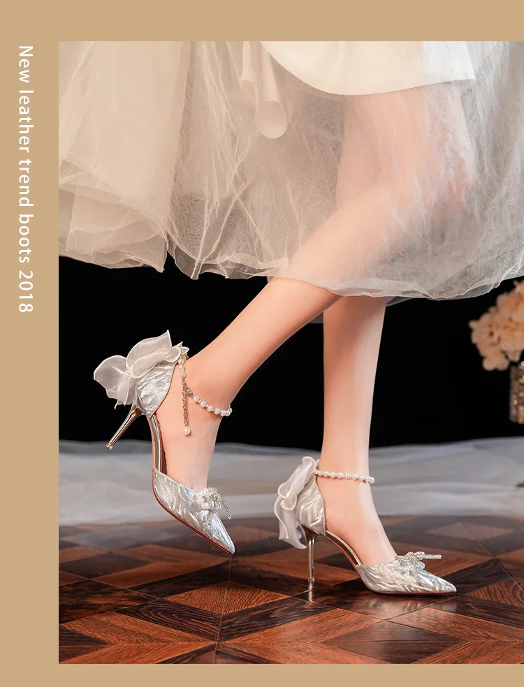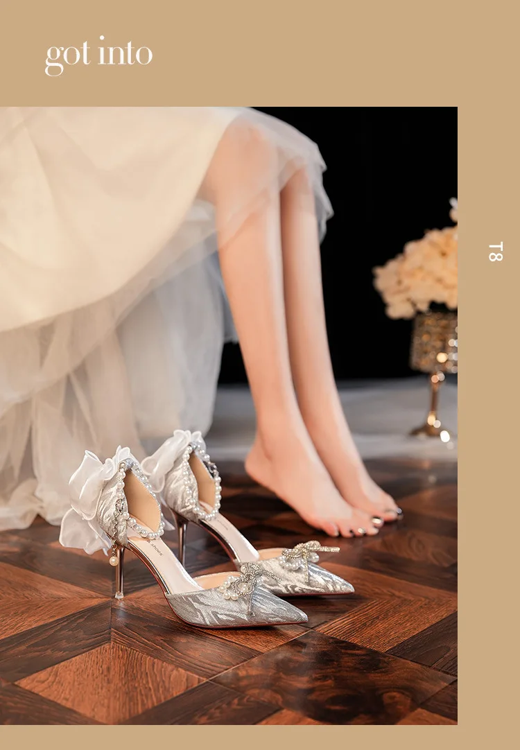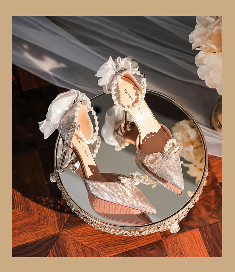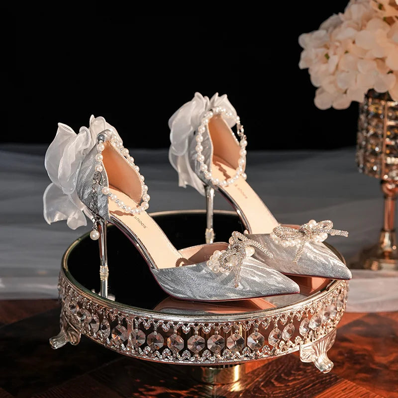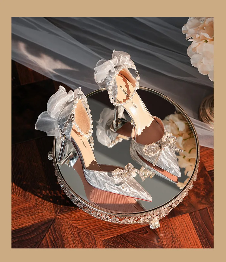 LIZAKOSHT - Summer Women's Sandals Luxurious Pointed Toe Rhinestone Bow Flower Stiletto Heels Banquet Wedding Shoes High Heels