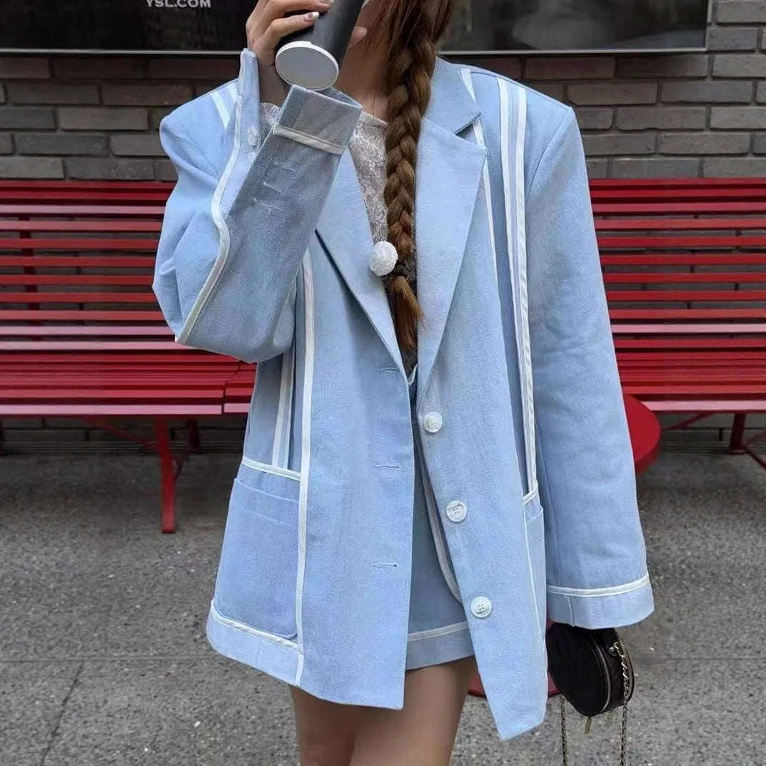 LIZAKOSHT  -  SuperAen Korean Style Design Patchwork Striped Suit for Women 2025 Autumn New Contrast Color Fashion Notched Blazer