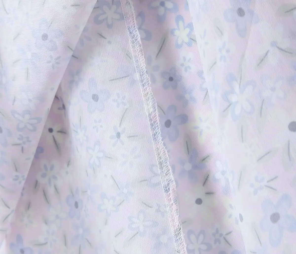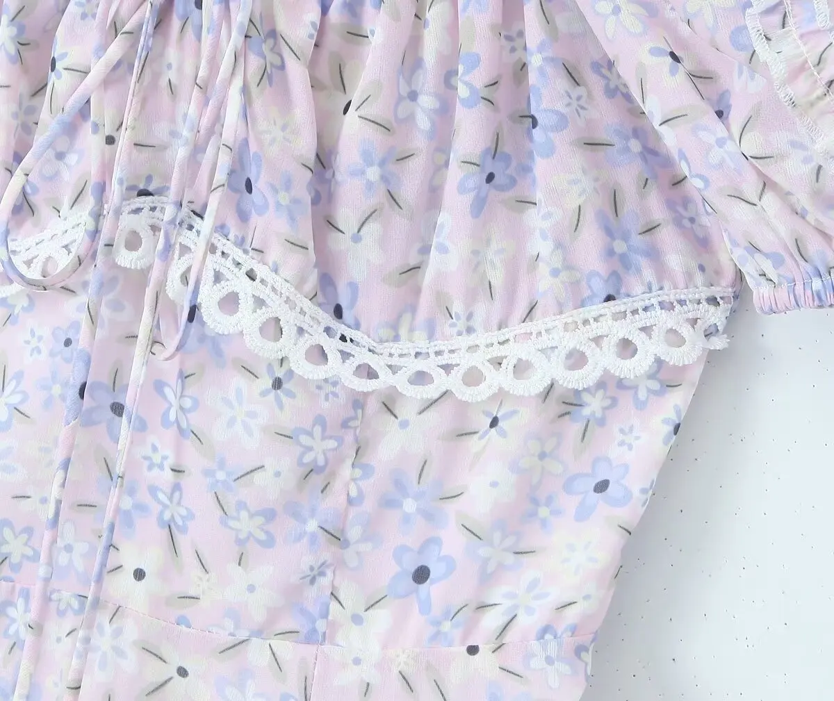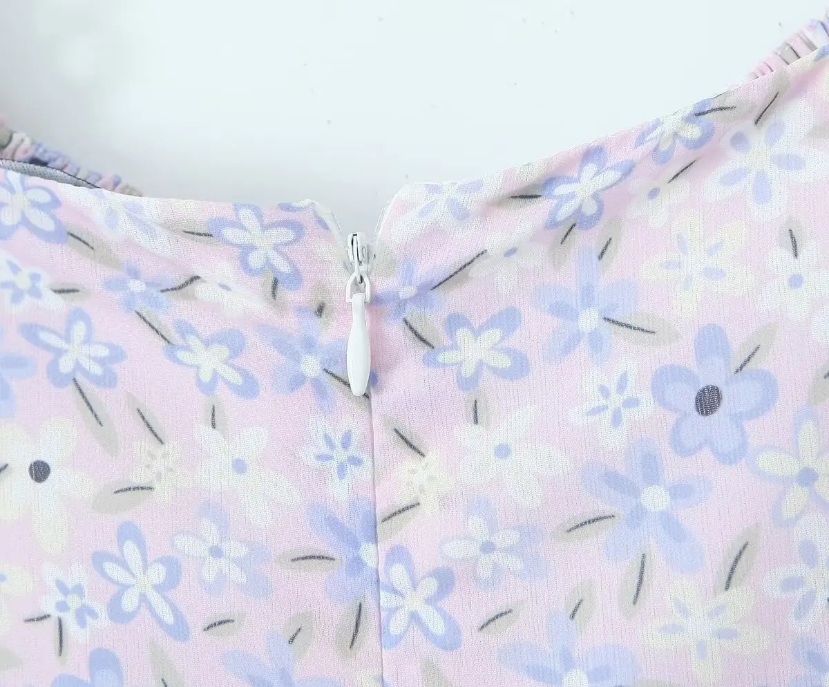 LIZAKOSHT - Sweet Floral Print Holiday Summer Dress Women Vintage Puff Sleeve Slit Hem A-line Midi Dresses French Style Robe