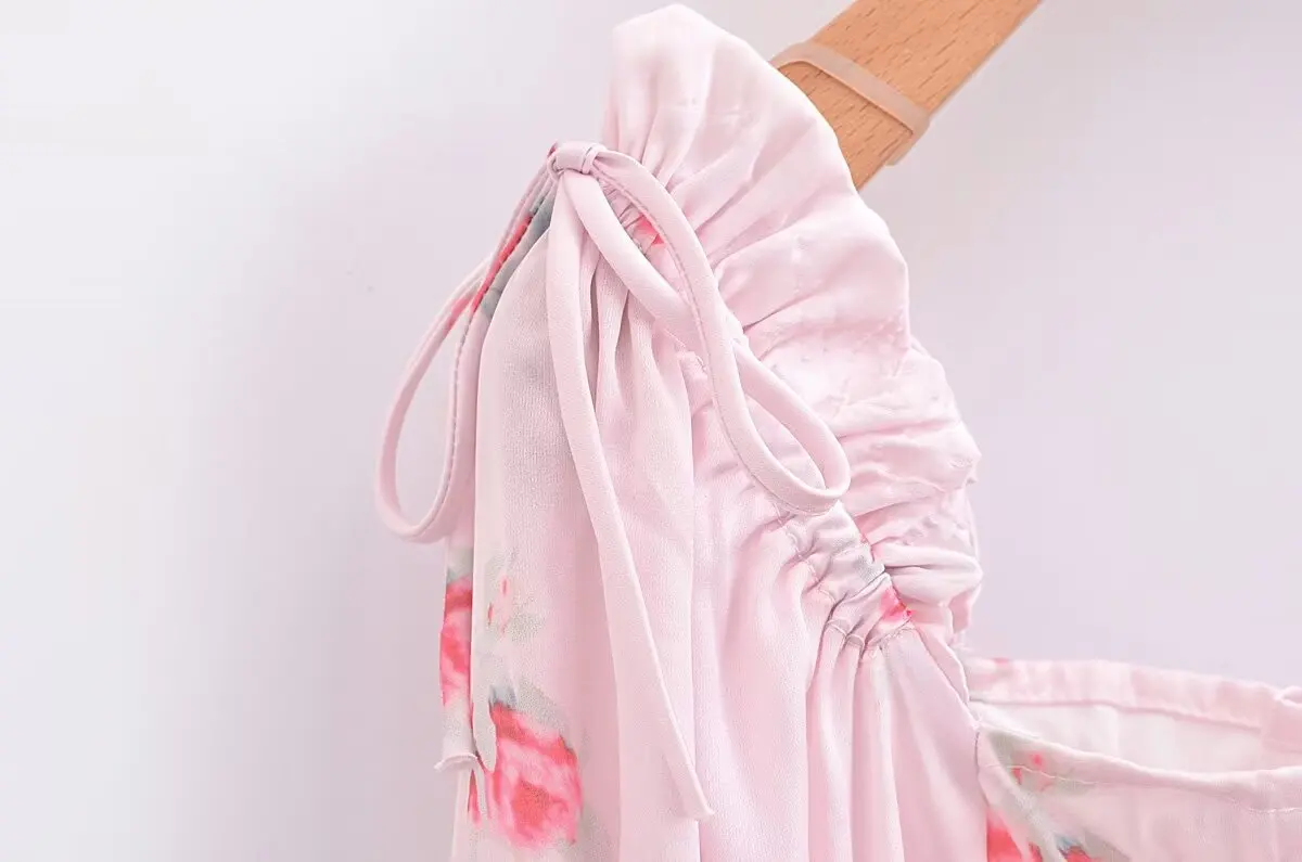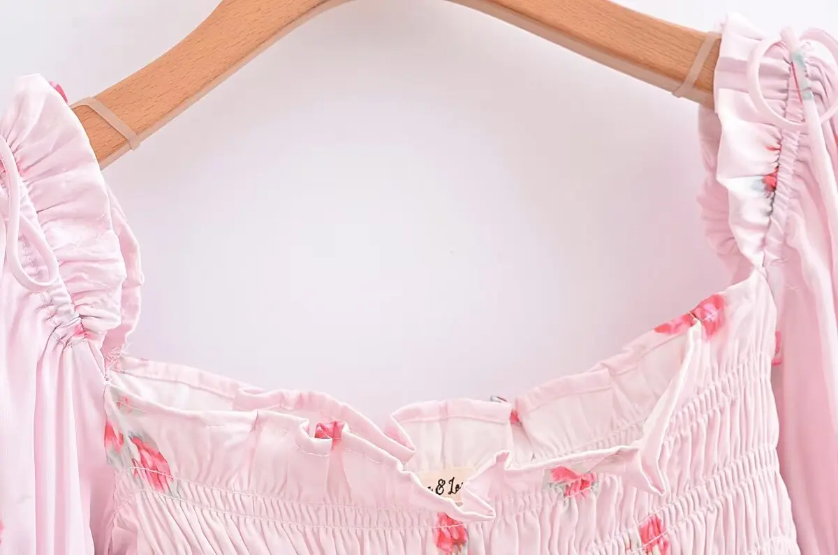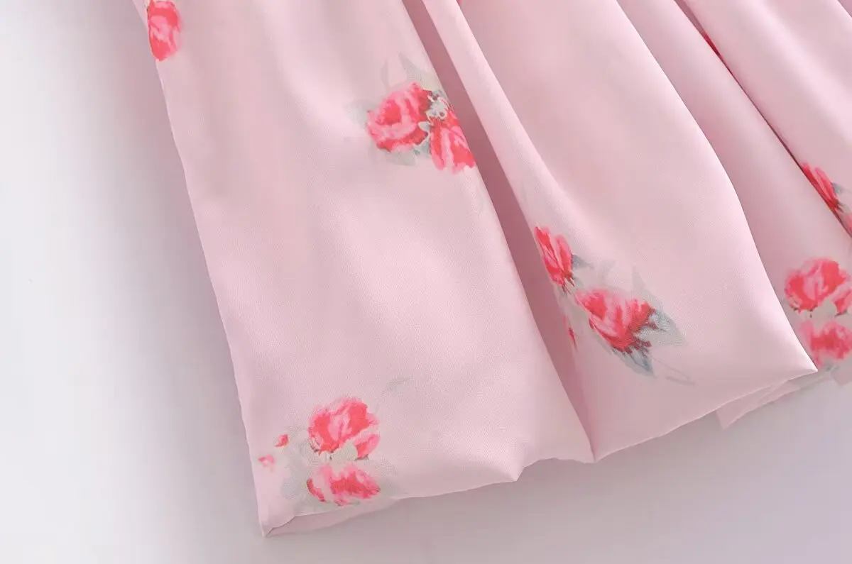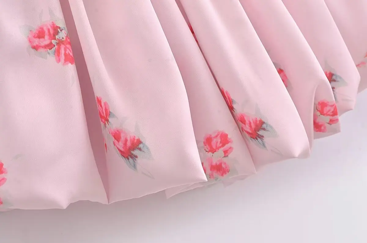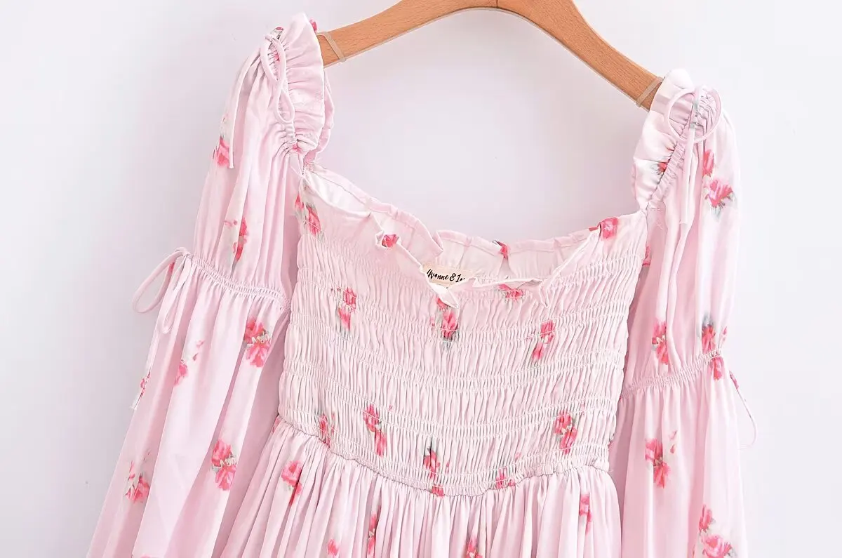 LIZAKOSHT - Sweet Women Pink Floral Print Long Sleeve Holiday Party Princess Mini Dress Summer 2024 Robe