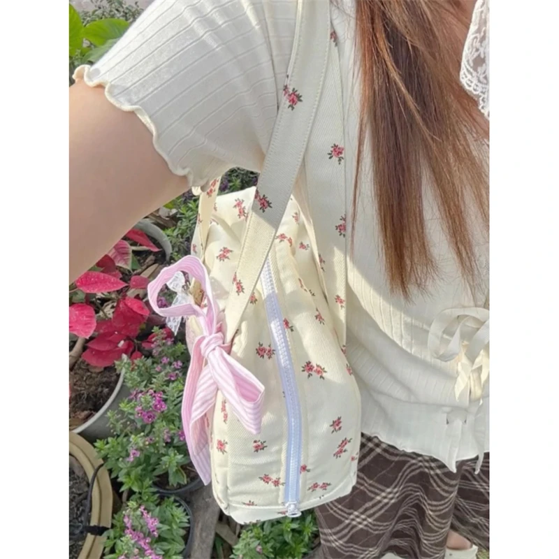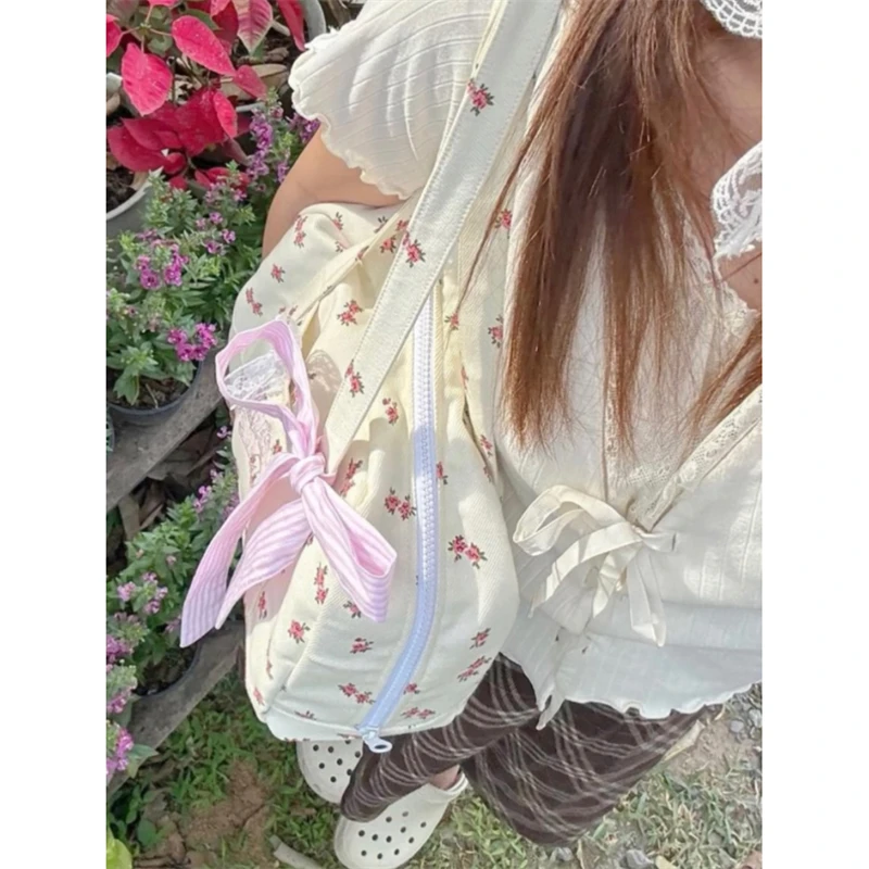 LIZAKOSHT - Sweet Y2k Aesthetic Girls Kawaii Shoulder Bags Japanese Chic Now Flower Print Women's Handbags Fashion Casual Fairy Underarm Bag