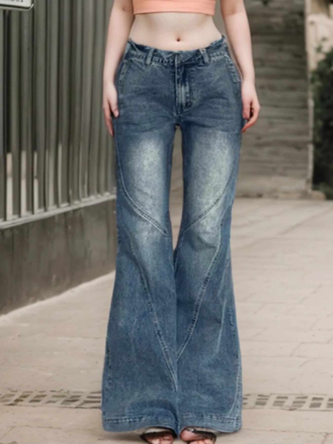 LIZAKOSHT  -  Sweetown Causal Slim Fit All-Match Women’s Flared Jeans Fashion Trendy Simple Retro Pants