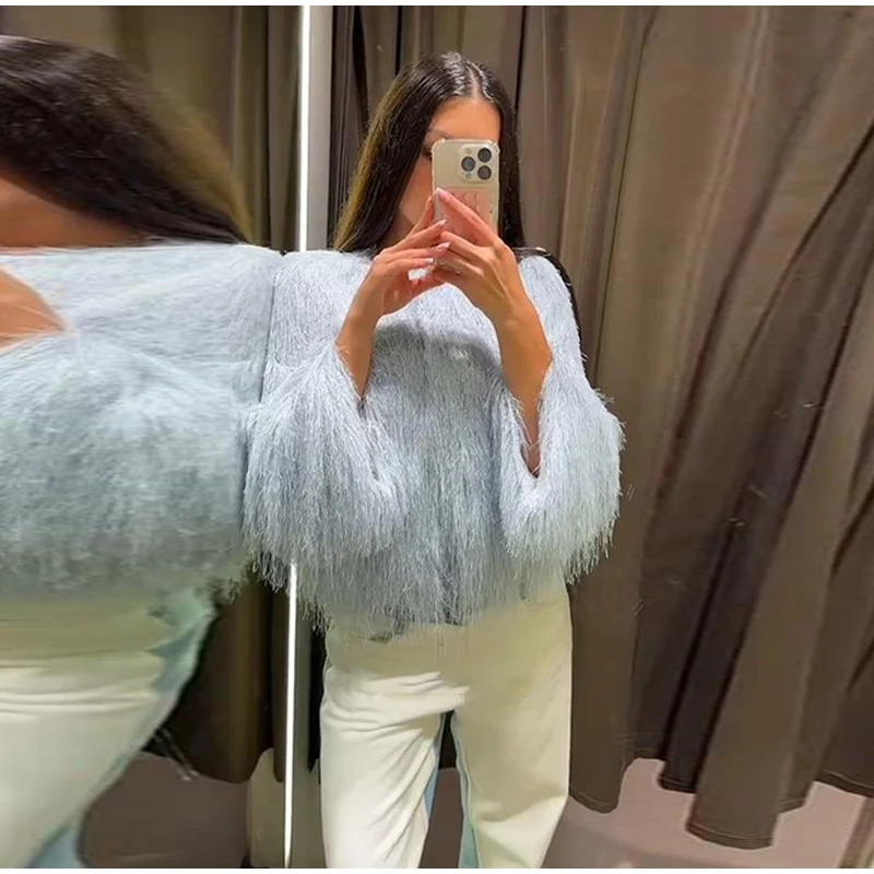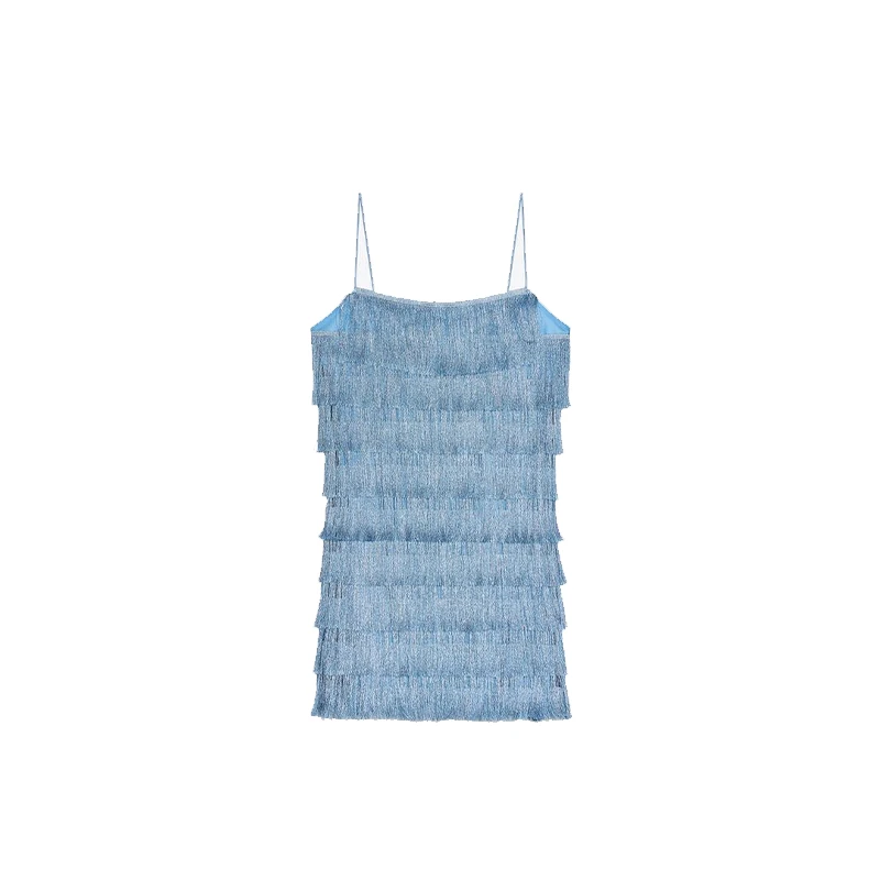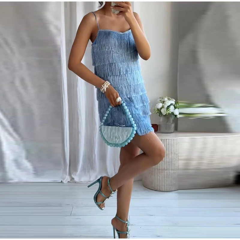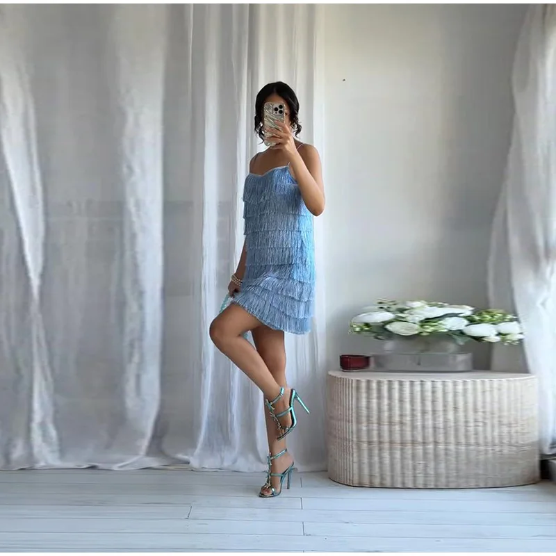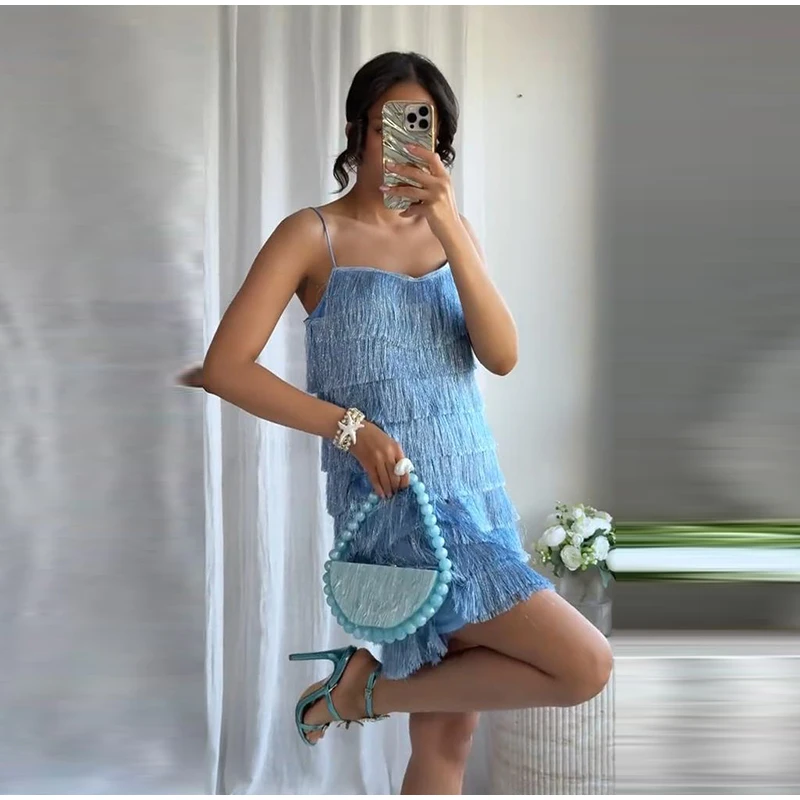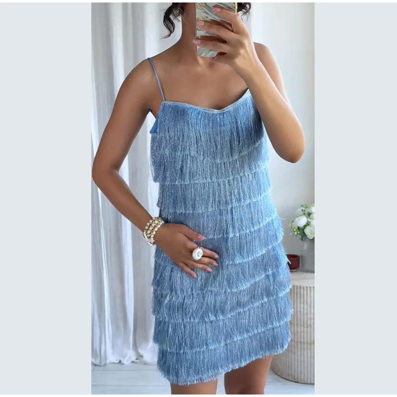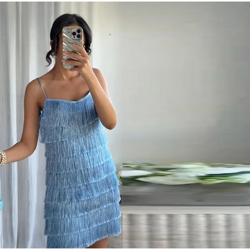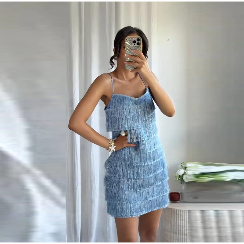 LIZAKOSHT - Tassel Short Dress Top Women Sleeveless Lace Up Backless Hip Package Vestidos Full Sleeve Loose Cardigan Autumn Party Clothes