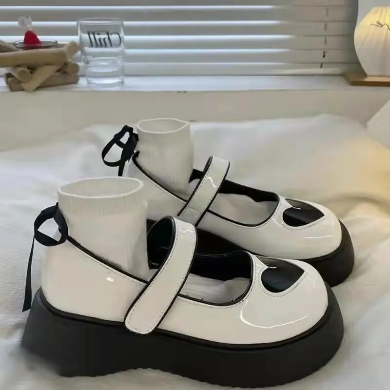 LIZAKOSHT - Tea Party Girls Japanese Vintage Jk Uniform Round Head Lolita Shoes Sweet Loli Thick Bottom Mid Heel Love Cosplay Lolita Shoes