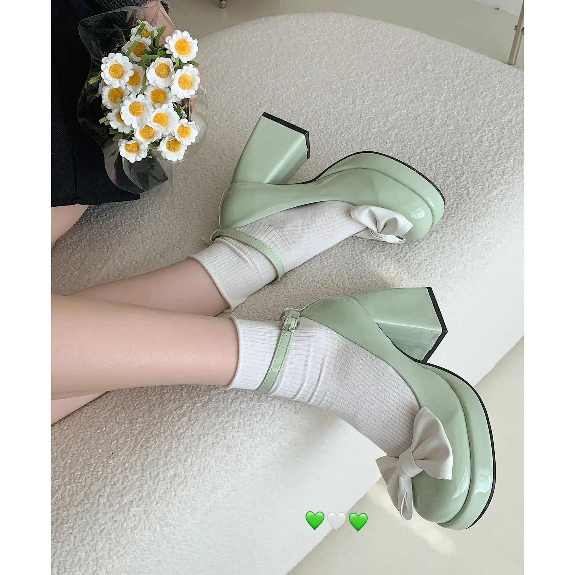 LIZAKOSHT - Thick heels, high heels, women's spring and autumn new French Marijane shoes with bow wedding shoes bride